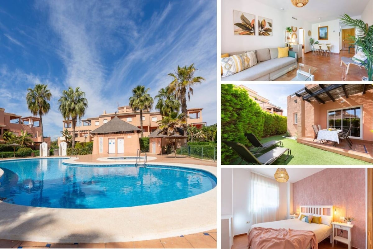 Parterihuoneisto kuistilla, rantakorttelissa Puerto Reyissä, Almeriassa. Kaksi makuuhuonetta, olohuone, keittiö baaritiskillä, kylpyhuone, kodinhoitohuone ja varasto. Ilmastointi, vuodesohva, wifi, 55" älytelevisio (Netflix ja Amaon Prime), pesukone ja kuivain. Keittiössä on mikroaaltouuni, astianpesukone ja täydellinen keittiövarustus. Päämakuuhuoneessa on 160 cm leveä parivuode ja toisessa makuuhuoneessa kaksi 90 cm leveää vuodetta, molemmissa on kaapit. Yksityinen pysäköintipaikka ulkona. Yhteinen uima-allas.