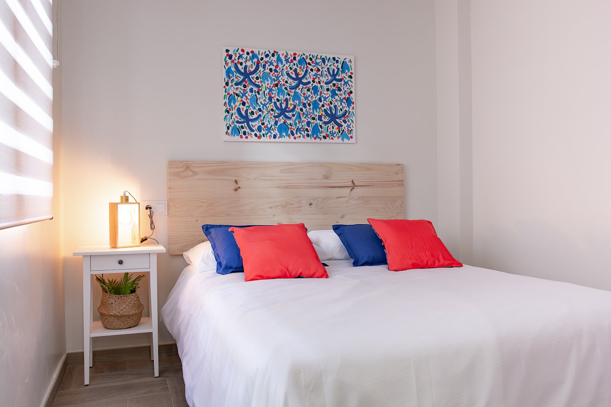 Koe huoneesi ilo, jota tulvii Alicanten uskomaton valo, joka tulee huoneesi parvekkeelta, ja juo kahvia samalla kun katselet vanhankaupungin heräämistä hiljaa. Tilava jaettu kylpyhuone on jaettu vain yhden muun huoneen kanssa, ja se sijaitsee kolmen askeleen päässä ovestasi. Näissä makuuhuoneissa on parivuoteet, ja ne sijaitsevat rakennuksen ensimmäisessä kerroksessa ilman hissiä, mutta niissä on leveät ja helppo kiivetä portaita.