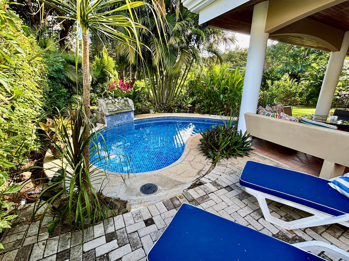 Viehättävä ja viihtyisä erillinen vierasmaja, joka sijaitsee mukavassa asuinyhteisössä, vain 5 minuutin kävelymatkan päässä kauniilta Playa Hermosan rannalta Guanacasten maakunnassa. Olemme kanadalaisia, mutta vietämme paljon aikaa Costa Ricassa. Siksi sinut voi majoittaa ystävällinen ja vieraanvarainen perheeni, joka asuu pääkiinteistössä (erillään vierastalosta) suurimman osan vuodesta, tai ystäviemme, jotka saattavat hallinnoida kiinteistöä.