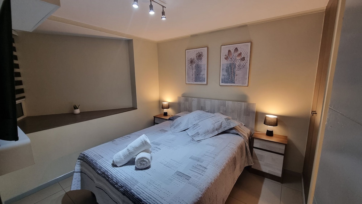 Nauti, rentoudu ja tutustu Santiagoon. Uusi, täysin varusteltu huoneisto, joka sijaitsee asuinalueella 7 minuutin päässä metrostasi ja 1 korttelin päässä kansallisesta stadionista. Siinä on 1 makuuhuone ja 1 kylpyhuone, lasten leikkialue, yksityinen pysäköinti ja ympärivuorokautinen turvallisuus. Ihanteellinen perheille, aviopareille, pariskunnille, ystäville ja seikkailijoille. Kauempana melusta ja muutaman metrin päässä kansallisesta stadionista.