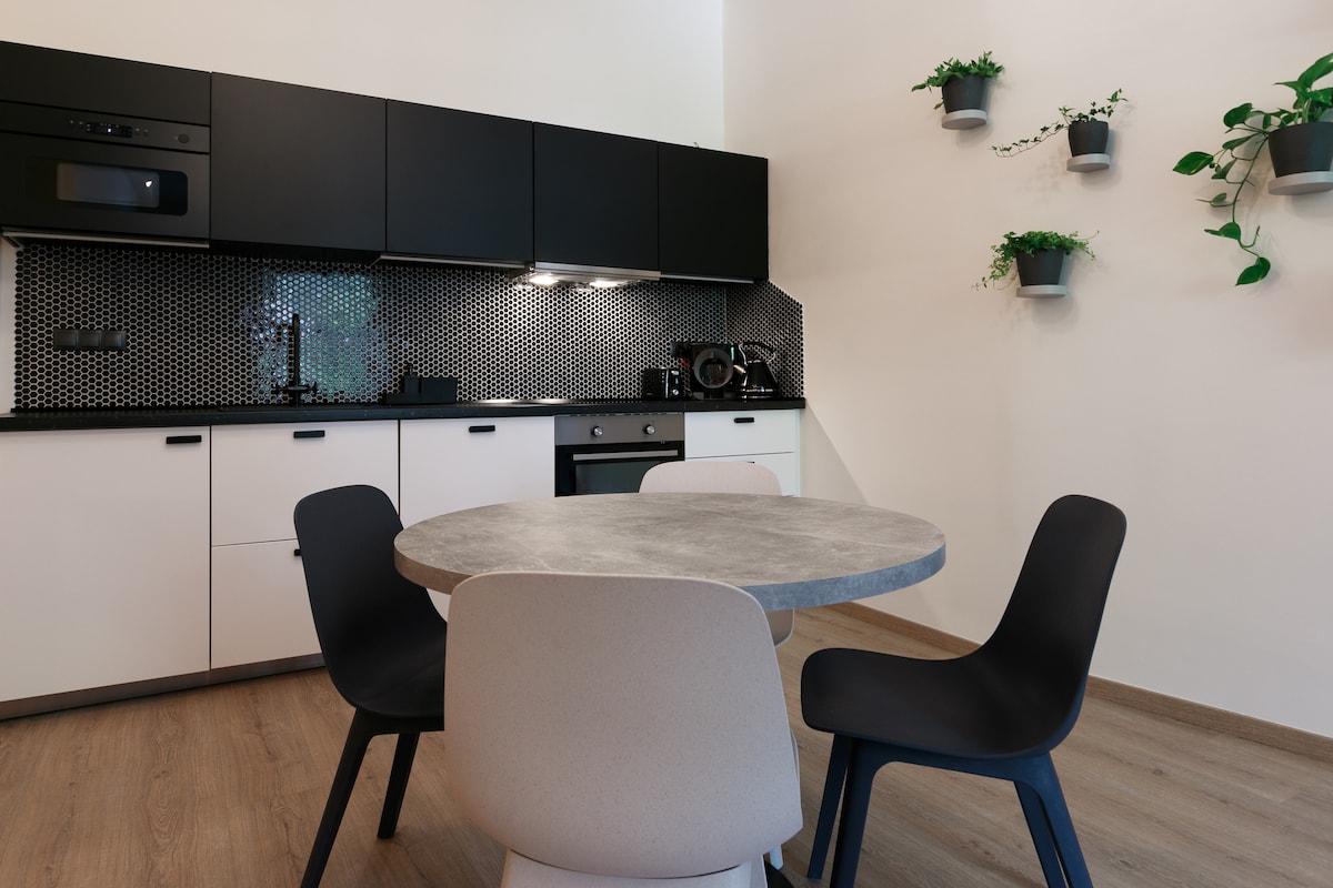 Viihtyisä, hyvin varusteltu, uusi asunto autotallilla Pilsenin keskustassa