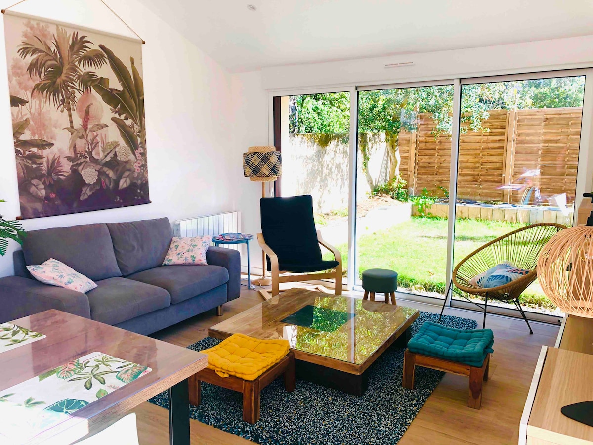 Olemme Charlotte ja Maxime, sisarukset, ja toivotamme teidät tervetulleiksi perheasuntoomme. Nauti tämän Pornicaisen talon pehmeydestä ja tunne heti olevasi lomalla! Kodikas ja lämmin tunnelma kauniilla kiviseinällä ja näkyvillä palkkeilla. Viehättävä etu, puutarha, jossa voit nauttia kauniista päivistä, ja grillaus, josta voit nauttia kesäiltoina. Toivomme voivamme toivottaa teidät pian tervetulleiksi aurinkoiseen lomaan.