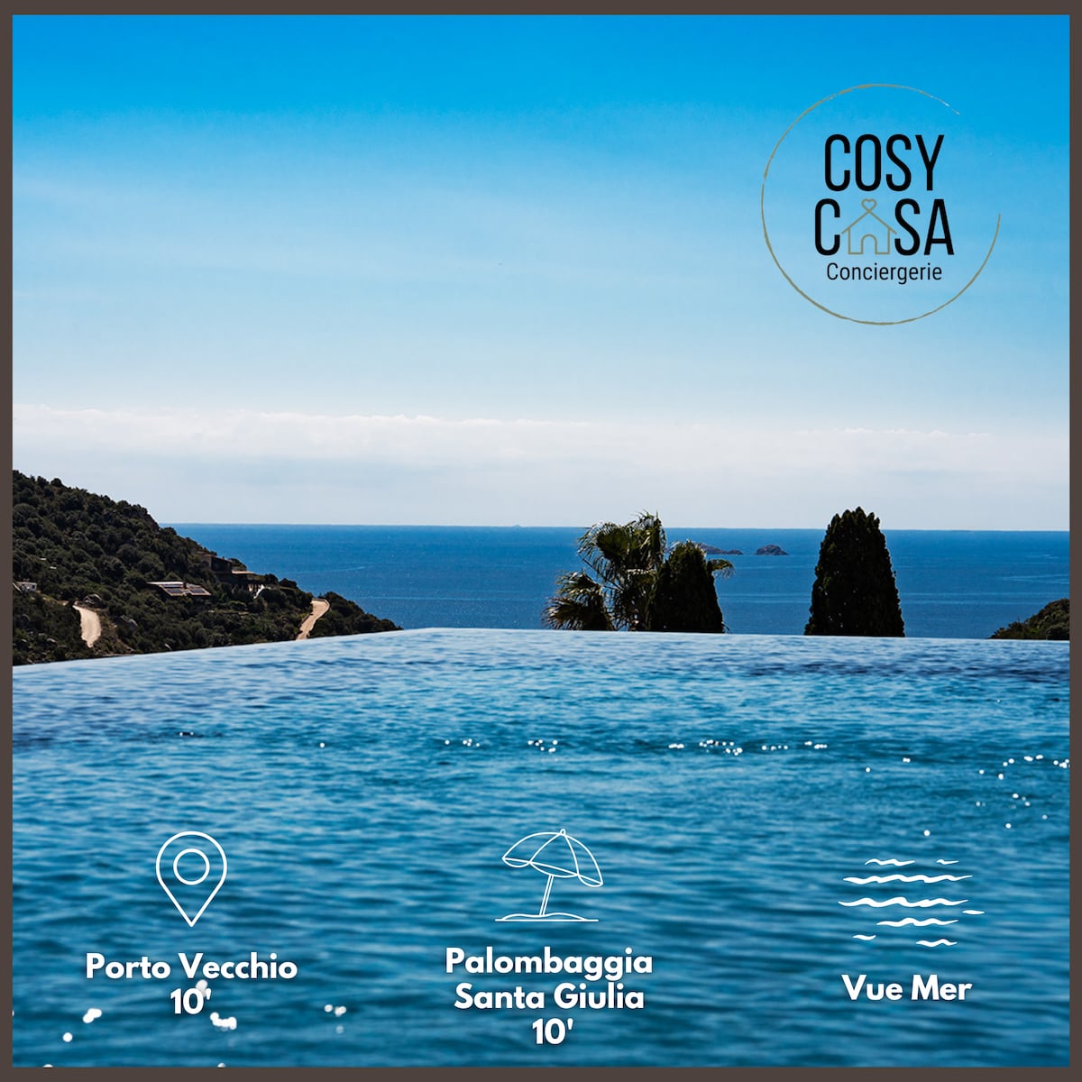 Tästä upeasta uudesta 90 m2: n kivihuvilasta on upeat meri- ja vuoristomaisemat sekä oma lämmitetty uima-allas Hiljainen, vain 3 km: n päässä Palombaggian rannalta ja 10 minuutin päässä Porto-Vecchion keskustasta Kivihuvilassa on kolme makuuhuonetta ja kaksi kylpyhuonetta. Jokaisessa huoneessa on ilmastointi ja tv. Wifi-internet, Nespresso-kahvinkeitin, kaasugrilli, solariumit