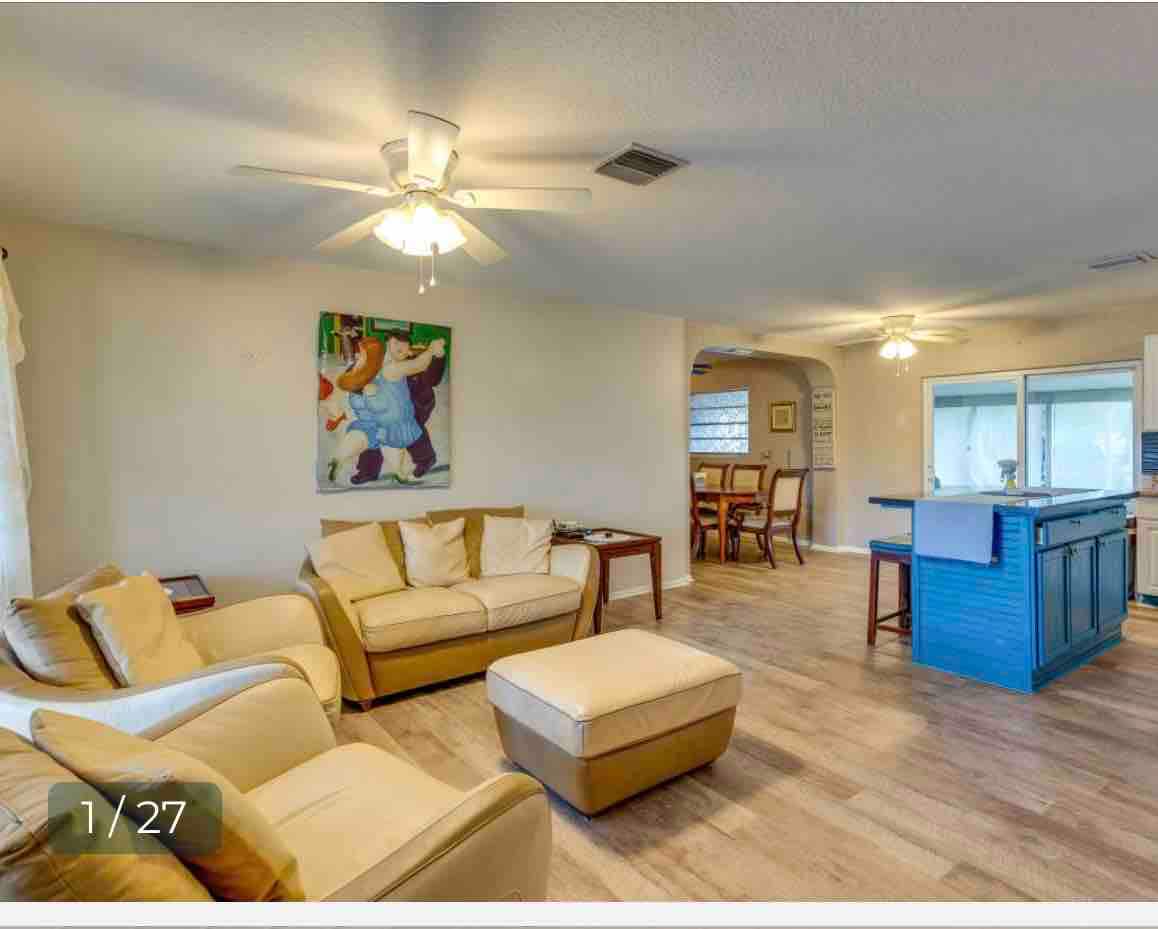 Enjoy a relaxing and private vacation for the whole family in a newly renovated and flowing open design 3 bdrm 2 bath home. Private fenced pool and separate hot tub, fenced in back yard. Central living/ dining area with large 60' Smart tv. Screened porch outdoor sitting/ eating area. PacMan, PingPong and toys. Walk to spectacular parks and trails. Ten minute drive to miles of pristine Treasure Coast beaches and attractions. Central location makes reaching the rest of Florida easy.
