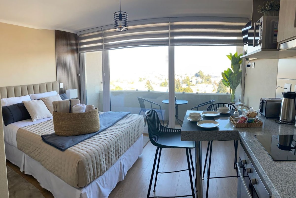 Moderni minimalistinen huoneisto, jossa on hyvä tunnelma, sijaitsee Chillánin sydämessä. Täysin varustettu ihanteellinen niille, jotka etsivät mukavuutta, rauhallisuutta ja yhteyksiä. Kahden korttelin päässä Arauco Chillán -ostoskeskuksesta, pääaukiolta, katedraalilta, lähellä pankkeja, erilaisia ravintoloita, supermarketteja, bussterminaalia, kuljetusmahdollisuuksia ovella ja muita välttämättömiä palveluja. Siellä on wifi, 40 tuuman älytelevisio, jossa on Netflix, Disney, Max ja TNT:n urheilukanava, pyykinpesumahdollisuus, kuntosali ja yhteistyötila.