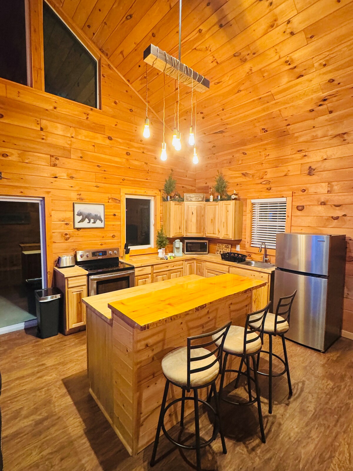 "Ginseng House" – Ensimmäinen omavarainen minitalomme! Käsintehty taideteos, jossa on käytetty sahallemme omia sahatavaroita. Kaunis metsäinen ympäristö, jota ympäröi 73 hehtaaria yksityistä maata ja kolme kilometriä kaunista Buffalo Creekin rantaviivaa, josta voi nauttia. Yksi erittäin mukava queen-vuode loftissa ja taitettava kahden hengen sohva pääkerroksessa. Ylimääräiset vieraat voivat pystyttää telttoja hintaan 10 dollaria/yö/henkilö. Lemmikit ovat tervetulleita – 35 dollaria (USD) / lemmikki – katso lemmikkikäytäntö.