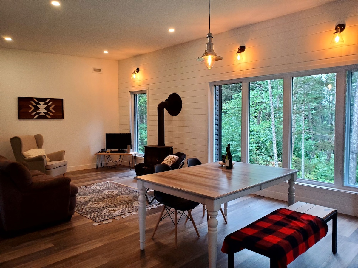 Tervetuloa Chalet Tri Boiséen, lämpimään, täysin puulla viimeisteltuun lomamökkiin, joka sopii täydellisesti luontoretkelle. Mökissä on oma poreallas ja ulkotulen paikka. Majoittaa korkeintaan 10 vierasta: • Avoin oleskelutila, jossa on kaasutakka • Täysin varusteltu keittiö, jossa on induktioliesi ja Keurig-kahvikone • Yksityinen elokuvahuone • Mezzanine-kerros riippumaton-tyylisellä verkolla • Oma työtila • perheystävälliset mukavuudet Moderni mukavuus ja luonto yhdistyvät unohtumattomaksi majoittumiseksi Estrie'ssa. CITQ: 308466