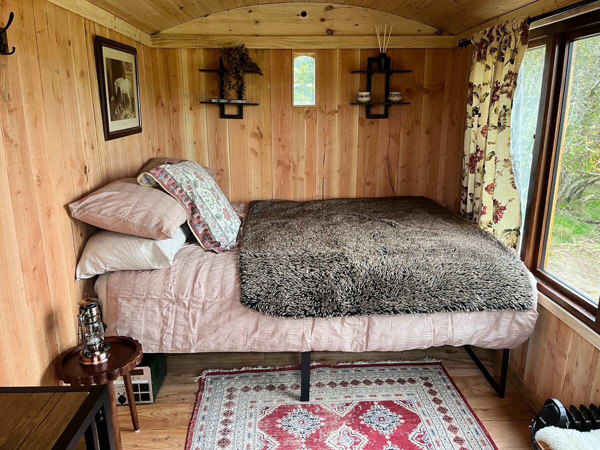 If you want to get away of it all this Single room cabin is located in a remote mid Wales. This working, carbon negative farm has Outstanding views all around with lots of footpaths and offas dyke or just sit back and enjoy the sound of nature. Pyhän Marysin kirkko ja taistelupaikka 1402 ja saksilinnan jäännökset Pillethin kukkulan juurella. Presteignen ja Knightonin kaupunkimarkkinat 6 mailin päässä, Hay on Wye, Ludlow ja Elan Valley 20 mailin päässä. Jokainen päivä on mukava 😊