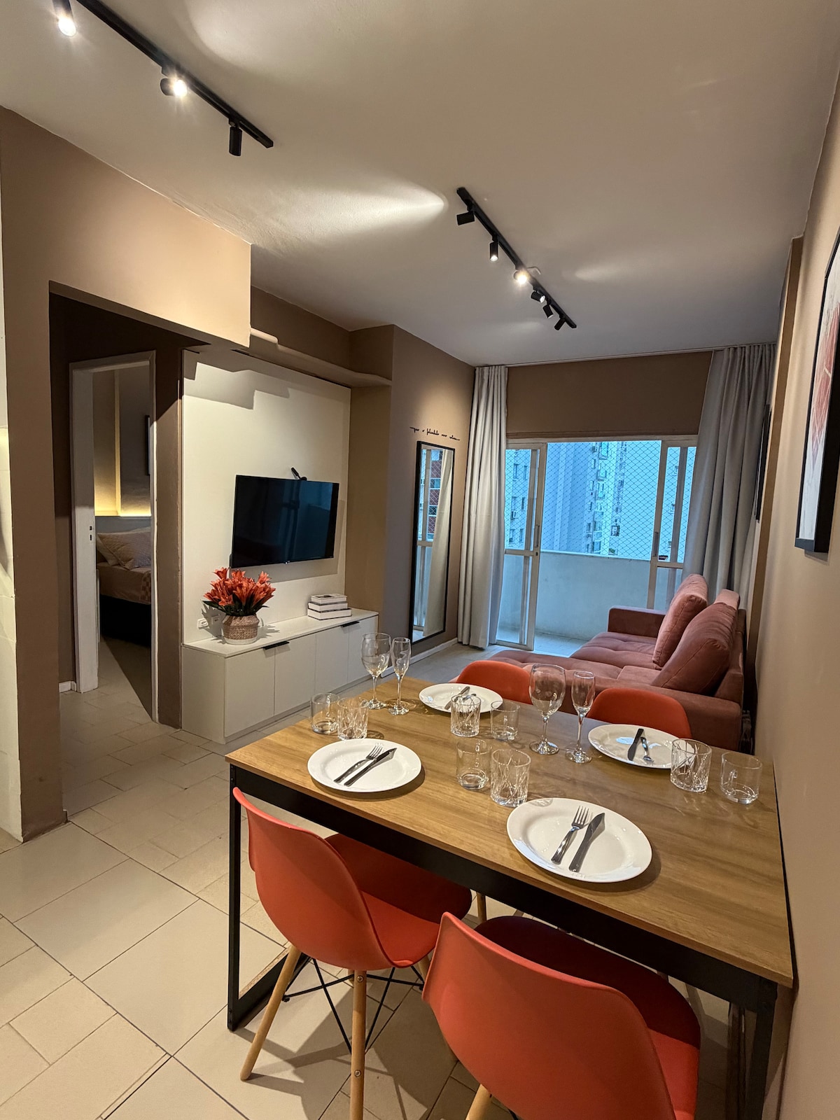 Pidä hauskaa koko perheen ja ystävien kanssa tässä tyylikkäässä paikassa. Huolellisesti suunniteltu huoneisto, jossa on arkkitehtoninen ja valotekninen suunnittelu parhaan mukavuuden ja uskomattomien päivien takaamiseksi. Tila on suunniteltu ja luotu niin, että se tarjoaa mukavuutta ja kaikki tarvittavat asiat täydelliseen lomaan, lepoon tai työhön, jotta voit tuntea olosi kotoisaksi. Sijaitsee Barra Sulissa, joka on yksi kaupungin suosituimmista ja vilkkaimmista alueista ja tunnetaan nimellä "Brasilian Dubai". .