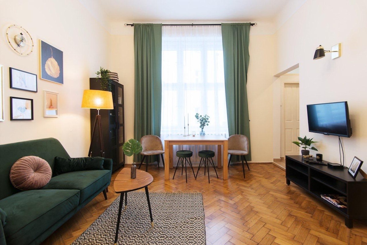Tutustu tähän romanttiseen 80 m²: n parvihuoneistoon, jonka on suunnitellut arkkitehti ja jonka olemme sisustaneet. Se on rauhallinen keidas romanttiselle viikonlopulle. Nauti yksityisestä bambupuutarhasta, ainutlaatuisesta suunnittelusta ja mezzanine-makuuhuoneesta, jossa on king-size-vuode. Ihanteellisella paikalla vain 15 minuutin kävelymatkan päässä päärautatieasemalta, se on täydellinen tukikohta Prahan tutkimiseen. Tiesitkö, että tällä paikalla on epätavallinen menneisyys?…Aito ja inspiroiva majoitus odottaa sinua.