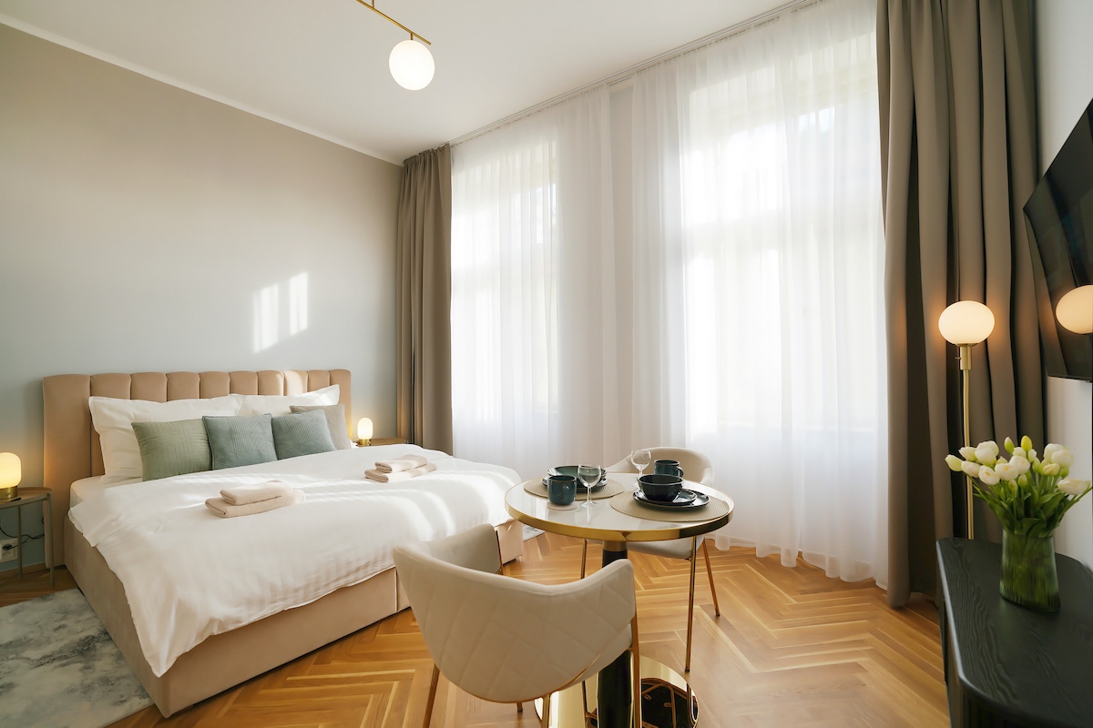 Ylelliset huoneistomme on suunniteltu ainutlaatuisesti, ja niissä on täysin varustetut keittiöt, olohuoneet ja kylpyhuoneet. Huoneistossa asuvat vieraat eivät ainoastaan nauti ainutlaatuisuudesta ja ylellisyydestä, vaan myös sen ainutlaatuisesta sijainnista aivan Prahan keskustassa, ja heidän ympärillään on joitakin Prahan parhaita ruokapaikkoja ja juomapaikkoja vilkas valikoima ostosmahdollisuuksia.