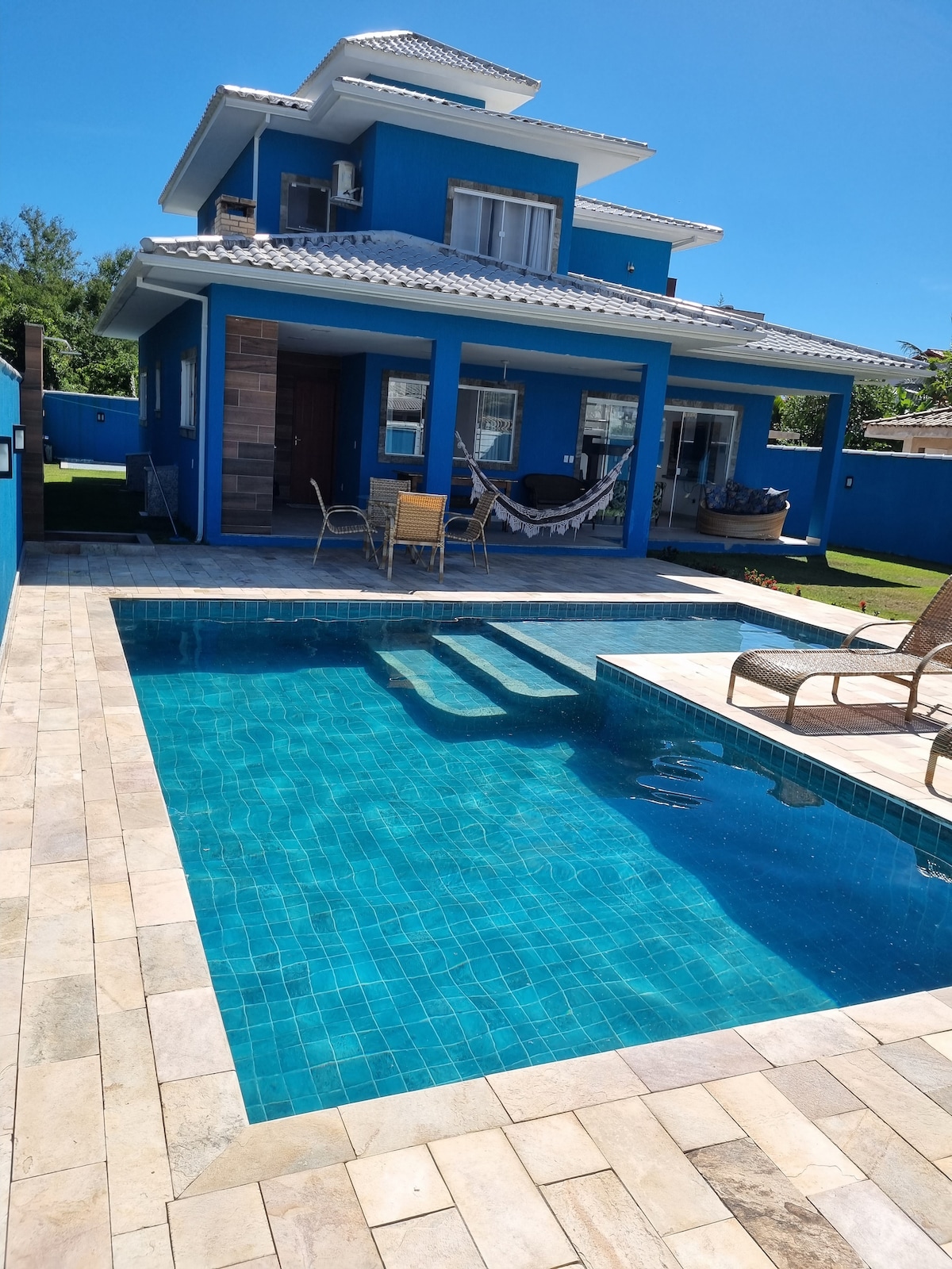 Talo sijaitsee mukavalla umpikujakadulla 5 minuutin ajomatkan päässä Geribá Beachiltä ja 10 minuutin päässä Rua das Pedrasista. Kaunis, ilmava ja hyvin sisustettu, majoittaa jopa 8 henkilöä mukavasti 4 sviitissä, joissa on c/c. Talo on täydellinen perheille ja ystäville. Uima-allas ja bbq ovat yksityisiä. Wifi on nopea (kuituoptinen, 300 Mbps). Tilaa on paljon. Joka tapauksessa talo on niin maukas, että se halaa!