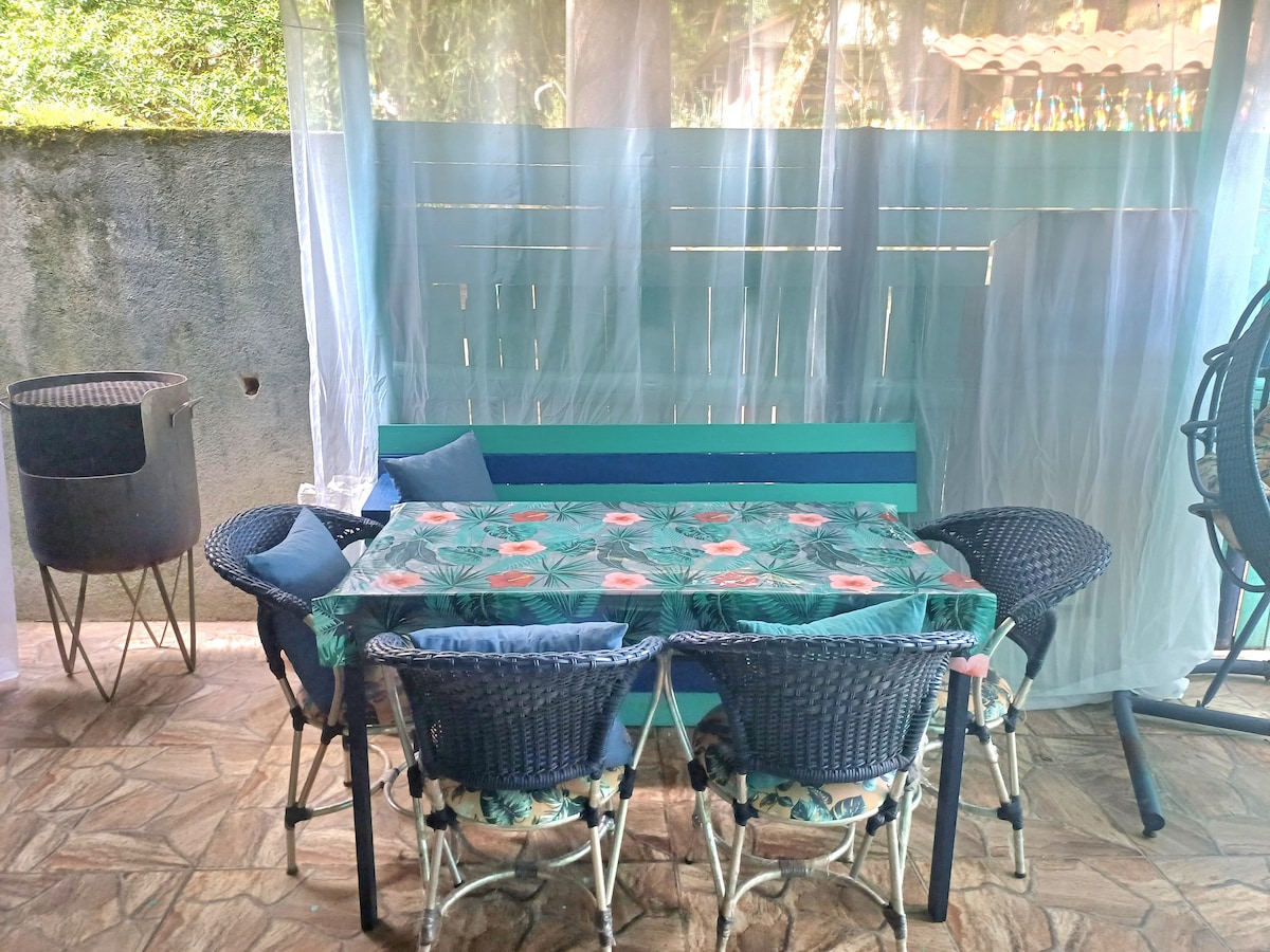 2 hengen mökkityyppinen huoneisto, täysin kalustettu. Internet - kaapeli-tv - ilmastointi - vuodevaatteet - rantatuolit - ympäröity ja metsäinen alue - turvallinen paikka - 70 metriä rannasta (lähellä kauppaa, baareja, ravintoloita ja leipomoita). Keittiössä on astiat, ruokailuvälineet, lasit, tehosekoitin, kahvinkeitin, mikroaaltouuni ja voileipägrilli. Tarjoamme astiapyyhkeitä, paperipyyhkeitä ja siivousvälineitä. Emme tarjoa kylpypyyhkeitä, vain vuodevaatteet.