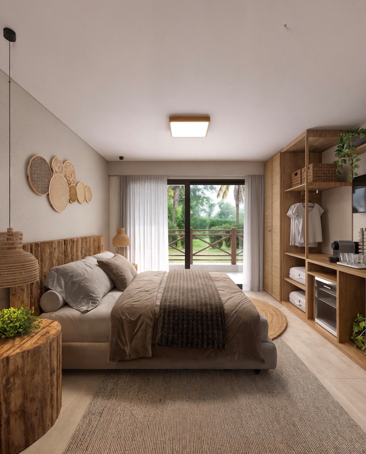 Tämä viehättävä 52 m²:n puumökki sijaitsee rauhallisessa ja helposti saavutettavassa paikassa. Se on integroitu luontoon, ja siinä on puutarha, ulkoalue ja parveke. Siinä on 2 makuuhuonetta, joissa on mukavat vuoteet, ilmastointi, kattotuuletin, kaapit ja 2 kylpyhuonetta. Pieni keittiö on hyvin ilmastoitu ja siellä on kaikki ruoanlaittoon tarvittava. Sisustus on maalaismainen ja yksinkertainen, mutta kaikki on tehty suurella huolellisuudella vieraiden vastaanottamiseksi. Ulkopuolella on suihku, pöytä ja penkit, riippumatto, kylpyhuone, pesuallas, pyykkinaru.