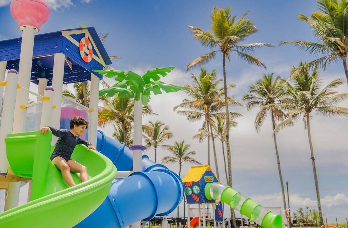 O mais novo, e um dos melhores resorts de Pernambuco ao seu alcance. Apartamento de 1 quarto, sala com cozinha e varanda, totalmente equipado. O resort é um verdadeiro playground, voltado para família, conta com Kids Water Park, duas brinquedotecas completas e piscinas com prainhas infantis para as crianças. Inclui ainda um boliche com seis pistas, duas salas de cinema e um complexo de jogos eletrônicos. Academia de ponta, quadras esportivas, minigolfe e um SPA relaxante com bangalôs.