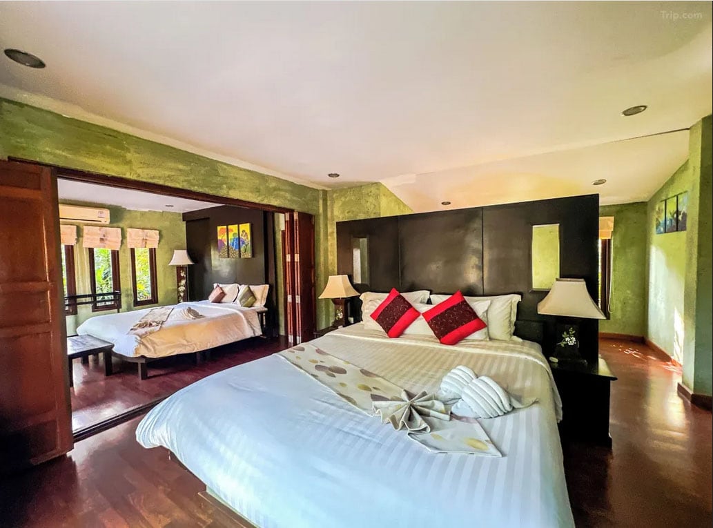 The Suite from Chan mai hom resort provide you cross the street distance to the beach of Pranburi. 2 bedrooms with only mirror door connected. Great for family of 4 people. The mirror door have curtain for private space can close or open. When wanna meet each other can just open the mirror door between and enjoy good chat. The full 2 bathrooms have shower and toilet in each room separately.