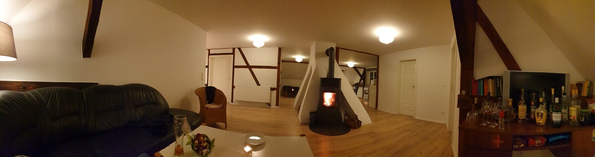 Heinäkuuhun asti uima-allasta voi käyttää vain rajoitetusti. Itsenäinen 120 m²:n huoneisto, jossa on suuri puuhellapolttoinen takka, yli 100 vuotta vanhan maatalon toisessa kerroksessa. Majoituspaikka sijaitsee Rosenwinkelin kylän ulkopuolella Heiligengraben kunnassa. Grilli ja nuotiopaikka puutarhassa. Ennen kaikkea täällä on "rauhaa". 4 yhden hengen vuodetta, 2 parivuodetta ja suuri vuodesohva olohuoneessa. Vauvoja ja pikkulapsia neuvoteltaessa etukäteen. (AIRBNB: N hinnan lisäksi yksityinen/lisävuode € 10,-/yö, muutoin 5 €/yö)