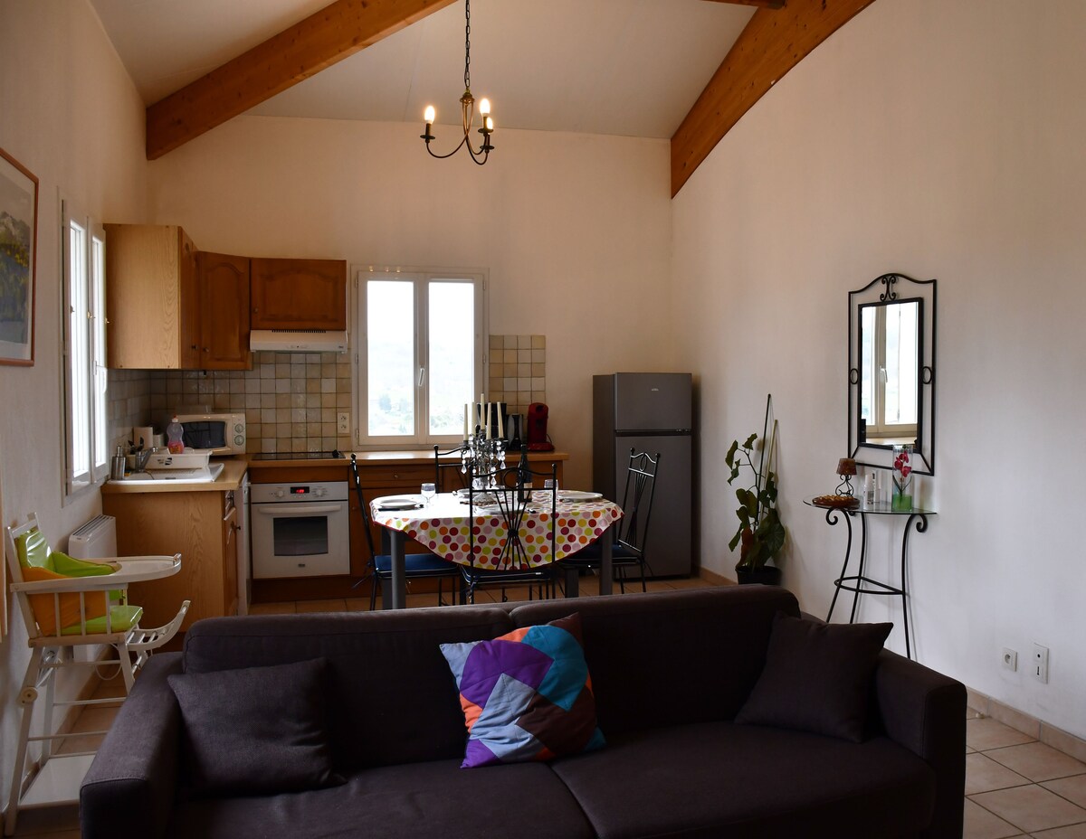 47 m2 asunto, jossa on terassi ja puutarha, henkeäsalpaava näkymä, lähellä Sarlatin keskustaa, kävelyetäisyydellä. Turvallisessa ja rauhallisessa asuinalueella. Kun olet tutustunut alueeseen päivän ajan, voit nauttia uima-altaasta. Sijainti on ihanteellinen, koska se on lähellä kauppoja ja keskiaikaista kaupunkia, mutta myös lähellä 5 linnan laaksoa (Beynac, Castelnaud jne.) ja myös esihistorian laaksoa (Montignac, Les Eyzies). Toivotamme sinut tervetulleeksi.