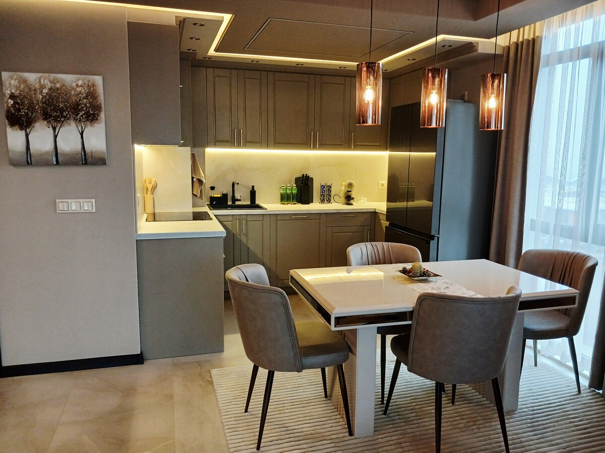 Äskettäin kalustettu kohde The Blue Sky Penthouse. Keskeisellä paikalla uudessa rakennuksessa lähellä metroasemia. ★"Yksi parhaiten varustetuista Airbnb-kohteista, joissa olemme majoittuneet." ESITTELYSSÄ: ➤ Oma, katettu pysäköintipaikka ➤ Hiljainen makuuhuone ja LUX-kylpyhuone ➤ Kalustettu terassi – 75 m2 65 tuuman➤ 4K-älytelevisio ja vuodesohva ➤ Työtila, jossa on erinomainen WiFi ➤ Hyvin varustettu keittiö ➤ Kaksi ilmastointilaitetta. Kaipaatko leipomotuotteita? Sinulla kävi tuuri! Sisäänkäynnin vieressä on leipomo.