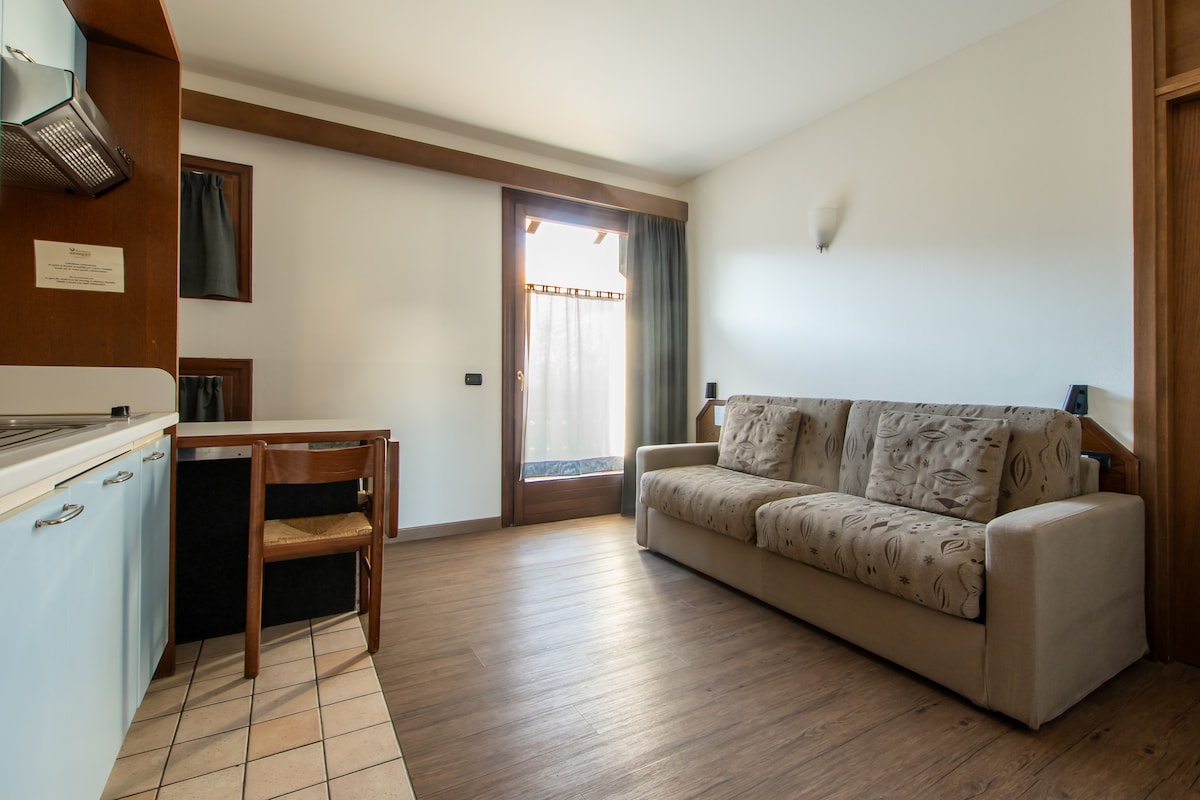 kahden huoneen huoneisto 2 hengelle (huoneisto. Violetta) 1. kerroksen huoneisto, jossa on mukava kahden hengen makuuhuone, olohuoneen keittiö, jossa on vuodesohva, kylpyhuone, jossa on suihku ja parveke, jolta on näkymät Pizzo Treserolle ja pohjoismaisille laskettelurinteille CIR: 0140073-CNI-00002 Kansallinen tunnuskoodi: IT014073C2KG6ROW4C