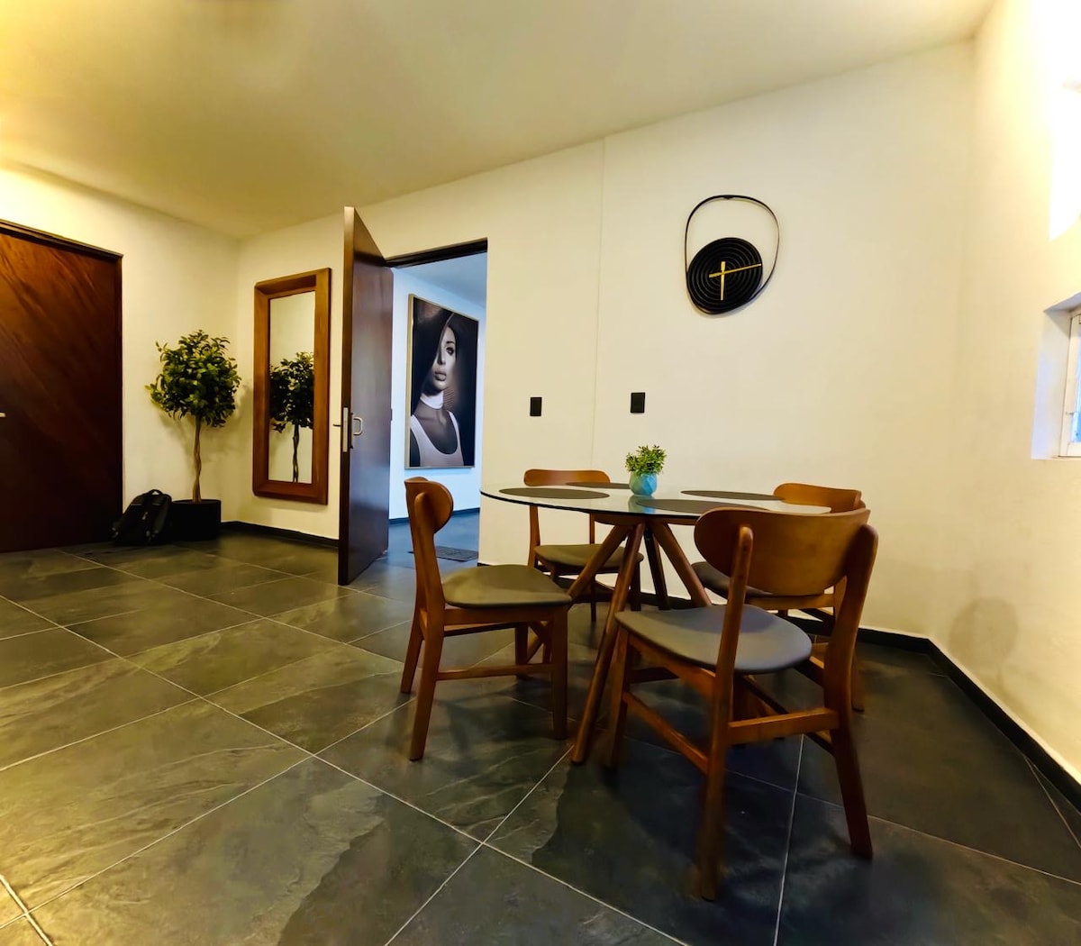 Nauti modernista huoneistosta Morelian Lomas de Santa Marían eksklusiivisessa asuinalueella. Siinä on kaksi makuuhuonetta (yksi king-vuode ja kaksi yhden hengen vuodetta), kolme ja puoli kylpyhuonetta, keittiö, jossa on liesi, kahvinkeitin ja mikroaaltouuni. Lisäksi sinulla on käytössäsi yksityinen autotalli, pesukone ja kuivain mukavuuden lisäämiseksi. Sijaitsee rauhallisella alueella, vain 15 minuutin päässä historiallisesta keskustasta. Lähellä sairaaloita, kouluja ja ostoskeskuksia. Ihanteellinen perheille tai ryhmille, jotka etsivät mukavuutta ja tyyliä.