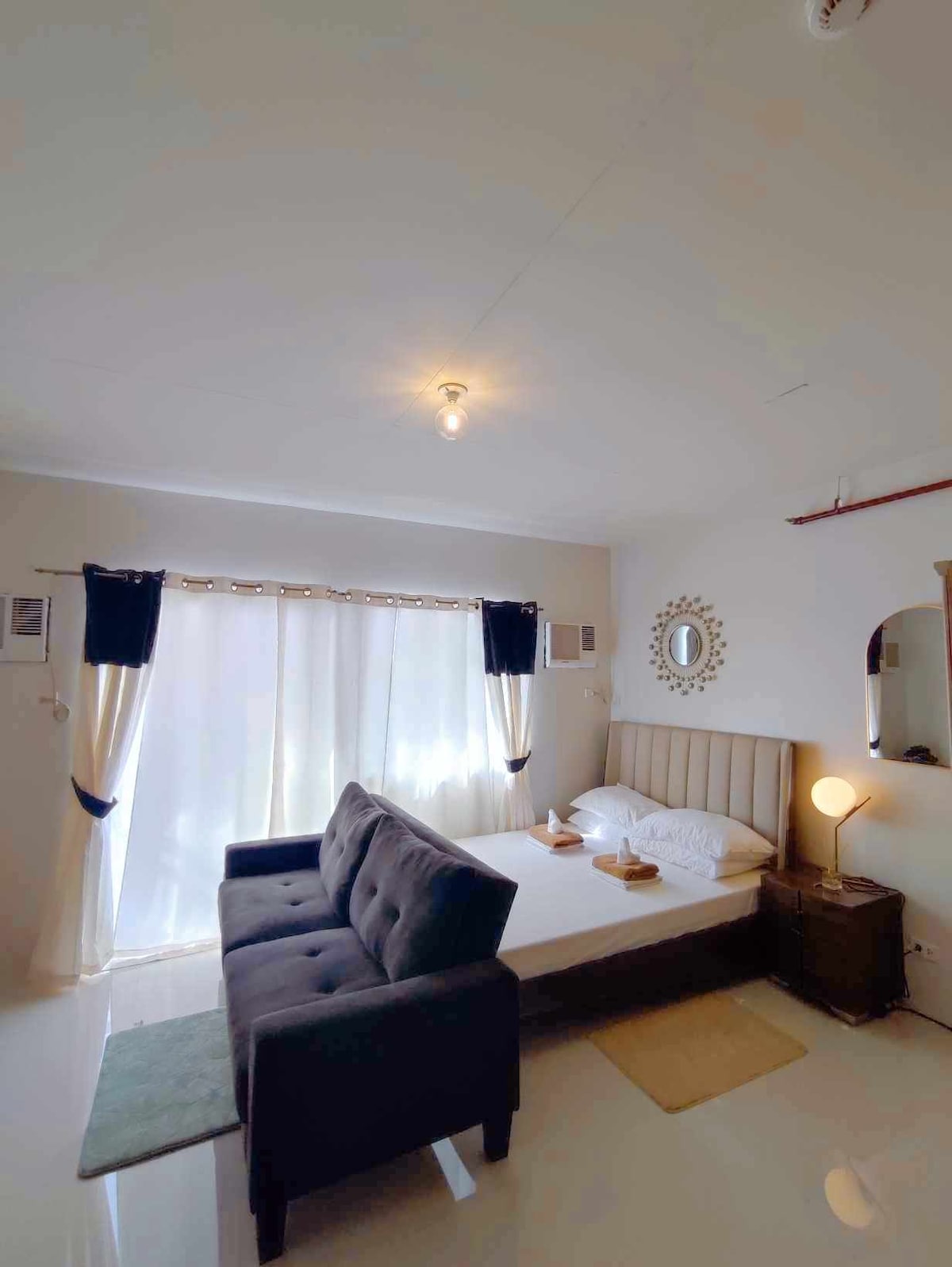 Tuo koko perhe tähän mahtavaan paikkaan. *KAUPPAKAMARILOMA-ASUNTOJA VUOKRATTUNA* ✅ täysin kalustettu ✅ympärivuorokautisten vartijoiden kanssa ✅ kerhotalo ja jaettu uima-allas ✅ w/ parking place ✅ 2 makuuhuonetta, joissa on täysi ilmastointi (1 queen-vuode, 1 yhden hengen vuode ja 1 parivuode) ✅ 1 kodinhoitohuone ✅ 2 kylpyhuonetta ✅ pesukone, jääkaappi, 6-paikkainen ruokapöytä, 3-pöytätuuletin, komero, laatikko, keittiövälineet jne. ✅ Lähellä lentokenttää, City Properia, Adventist Hospitalia, Medical Cityä, Coliseumiä, Robinsons Mallia, SM:ää, One Asenso -ostoskeskusta ja BM-ranna