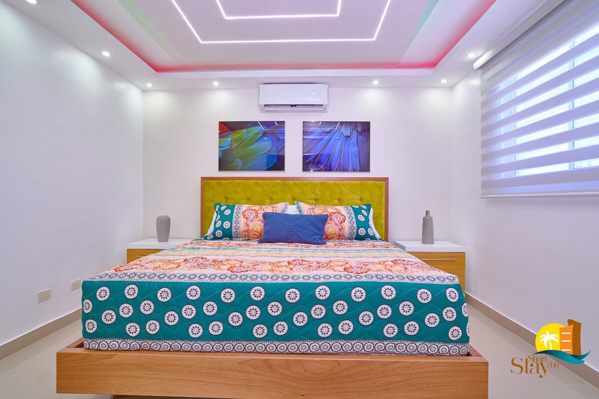Tämä 7. kerroksessa sijaitseva huoneisto, jossa on hissi, on kuin HGTV:stä, mutta se sijaitsee Santiagon erittäin halutulla Nibaje-alueella, ja se on sinun, perheesi ja ystäviesi käytettävissä. Vain muutaman minuutin päässä El Monumentosta, lähellä tärkeimpiä supermarketteja, ostoskeskuksia, ravintoloita ja liikennevälineitä. Käytä tilaisuutesi vierailla yhdessä Dominikaanisen tasavallan halutuimmista kaupungeista!