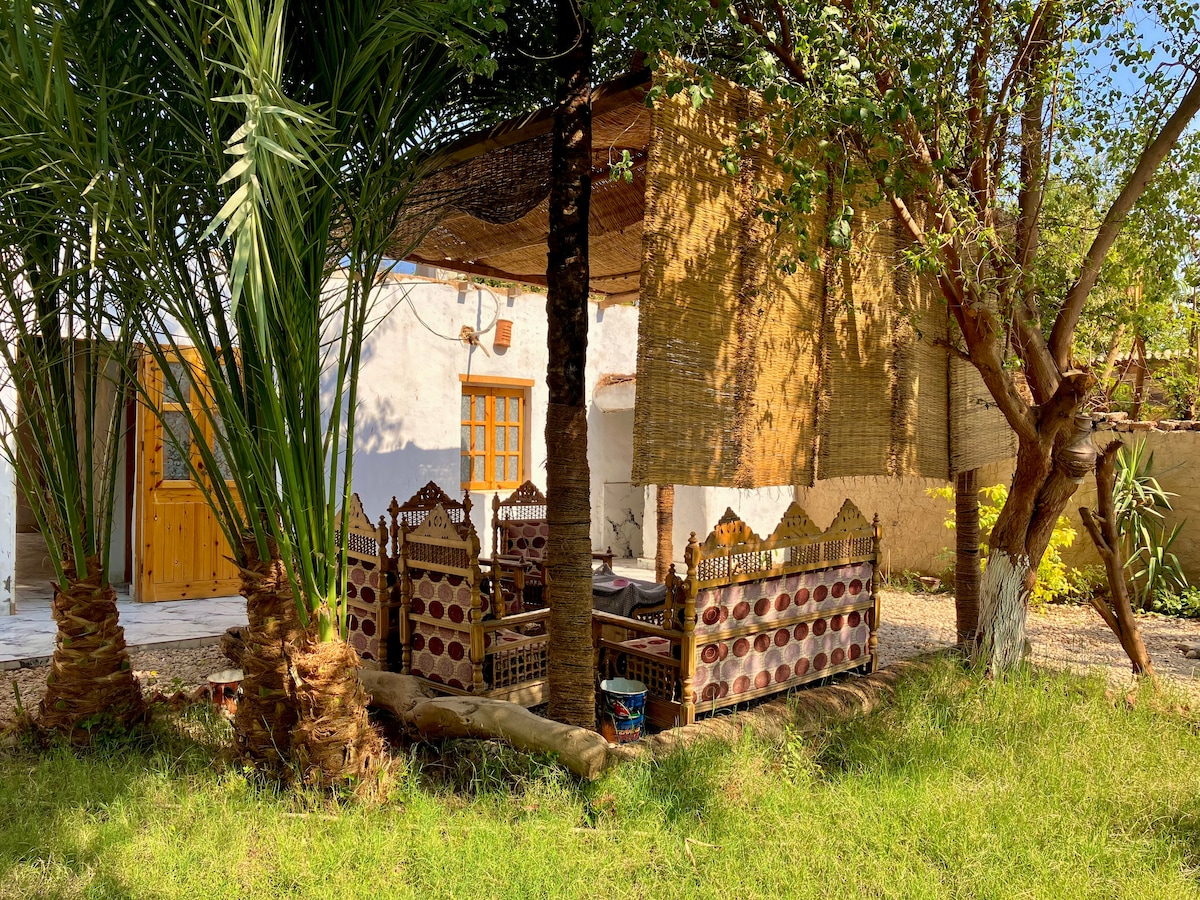 Tervetuloa NILE SPIRIT -huoneistoihin LÄNSIRANNALLE, vain 15 minuutin ajomatka muinaisiin egyptiläisiin kohteisiin ja 10 minuutin kävelymatka laivalle! Nauti tästä tilavasta, modernista, täysin varustetusta 1 makuuhuoneen huoneistosta (2. kerros). Nautit rauhallisesta naapurustosta ja saat hyvät yöunet, jotta voit tutustua Luxoriin. Nauti kattojemme uskomattomasta näkymästä Niiliin ja rentoudu puutarhassamme, jos haluat rentoutua pitkän tutkimuspäivän jälkeen. Ole kuin kotonasi! Autamme mielellämme suunnittelemaan ja järjestämään matkasi – kysy vain meiltä!