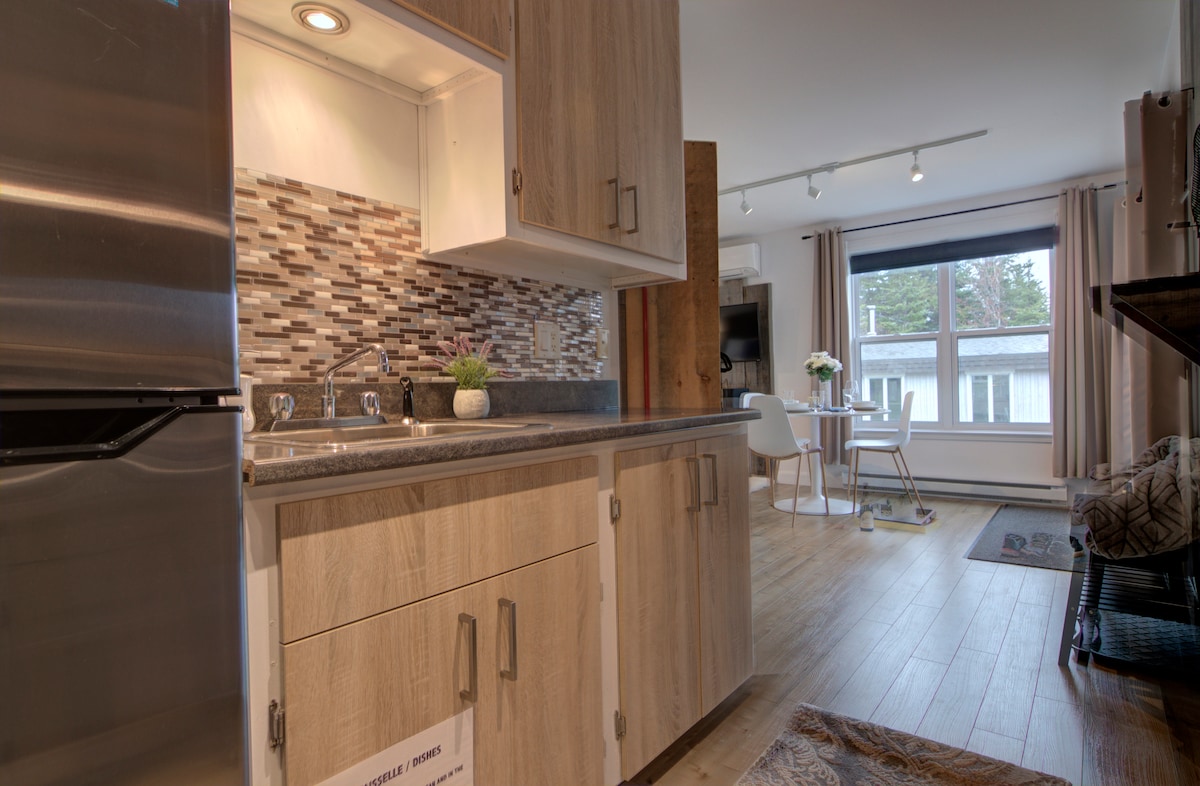 Appartement de style condo de 420 pieds carrés, moderne et lumineux. Que ce soit pour le loisir ou le travail, c’est facile de prendre ses aises quand tout ce qu’on cherche est à portée de la main. Vous avez accès à un balcon privé avec vue sur le centre-ville. Une pièce d'identité et une carte de crédit valide sont requises pour effectuer l’enregistrement. Une pré-autorisation de 250,00$ est capturé lors de votre enregistrement. CITQ: 300840