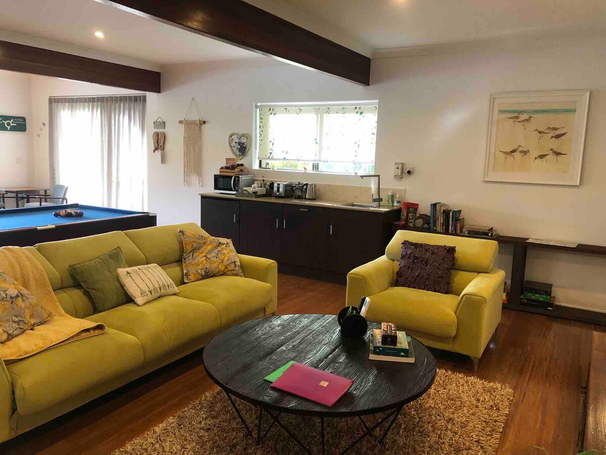 Majoitu Cairnsin ensiluokkaisessa esikaupungissa Edge Hillissä. Kasvitieteellisen puutarhan ja ruokapaikkojen keskuksen kautta saavut sviittiin, joka on osa kotiamme. Kävele kahviloihin, ravintoloihin, deliin, lihakauppoihin, ruokakauppaan, puutarhoihin, Tanks Art Centreen ja kävelyreiteille. Supermarket 3 minuutin ajomatka. Kaupunki 10 minuutin ajomatka, helppo pääsy pohjoiseen menevälle moottoritielle ja lentokentälle. Matkustaville pariskunnille, työmatkoille ja yksittäisille ihmisille, jotka etsivät hiljaista tilaa, ei lapsia. Asumme ylimmässä kerroksessa, alakerrassa on 2 erillistä sviittiä. Ilmoita, että hyväksyt säännöt.