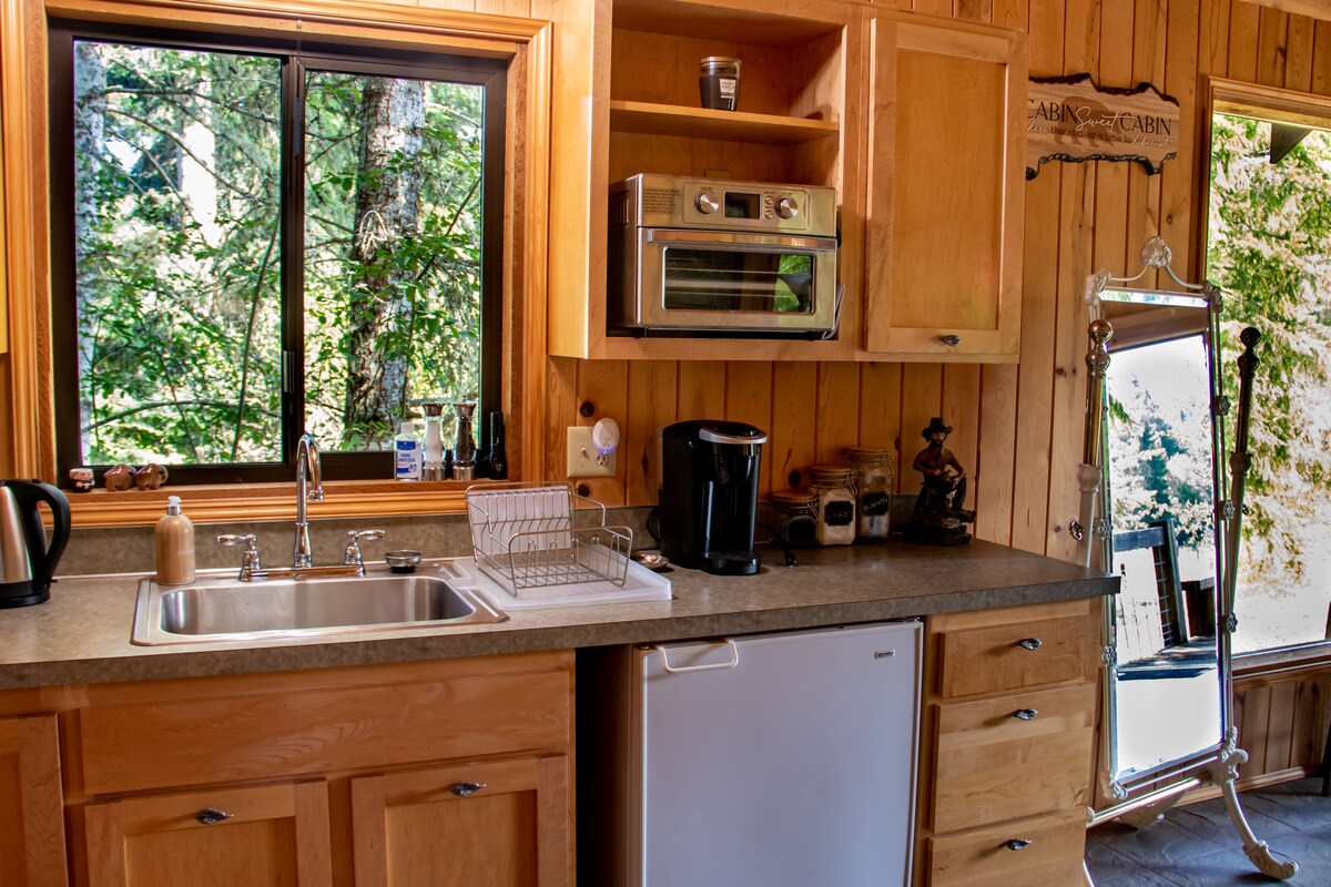Tämä ihastuttava pieni piilopaikka on rakennettu 1970-luvulla syrjäiseksi kalastusmökiksi, ja se on muotoiltu uudelleen idylliseksi pakopaikaksi metsässä. Tämä mökki sijaitsee graniittikielekkeellä, josta on näkymä legendaariselle Canyon Creekille, joka näkyy lähes kaikista laajoista ikkunoista. Vietettyäsi päivän tutustumalla yhteen läheisistä eeppisistä vaellusreiteistä sinut palkitaan rentouttavalla kylpemällä joenrannan porealtaassa tai lautapelillä ystävien kanssa nuotion äärellä.