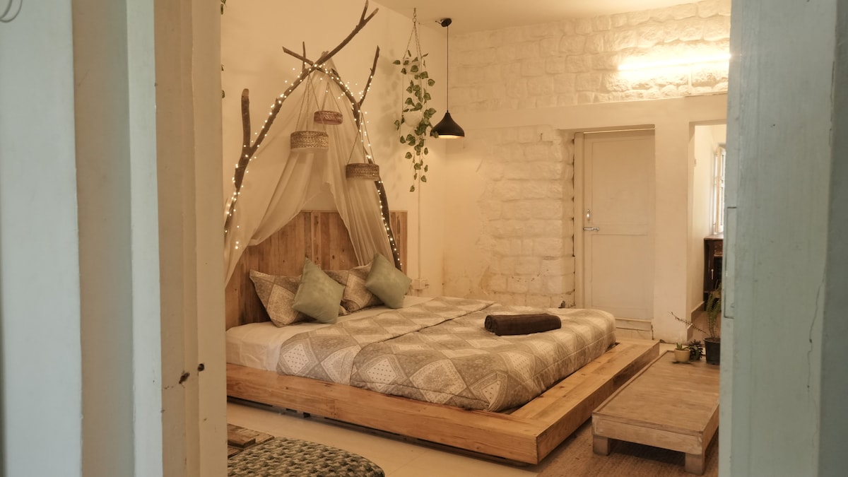 Earthy Boho Chic Mudhouse – unenomainen majoitus Dharamshalassa 🌿✨ Koe boheemi viehätys ja moderni mukavuus tässä kaksikerroksisessa lomakohteessa, jonka parvekkeelta on upeat 180 asteen näkymät Himalajalle. Nauti kodikkaista projektorielokuvailtoista, tyylikkäistä sisätiloista ja kaikista välttämättömistä mukavuuksista täydellistä majoittumista varten. Kohde sijaitsee Dharamshalan sydämessä, ja vain muutaman askeleen päässä on kahviloita, markkinoita ja maisemapolkua. Varaa nyt ja nauti taianomaisesta lomasta vuoristossa! 🌄🏡✨