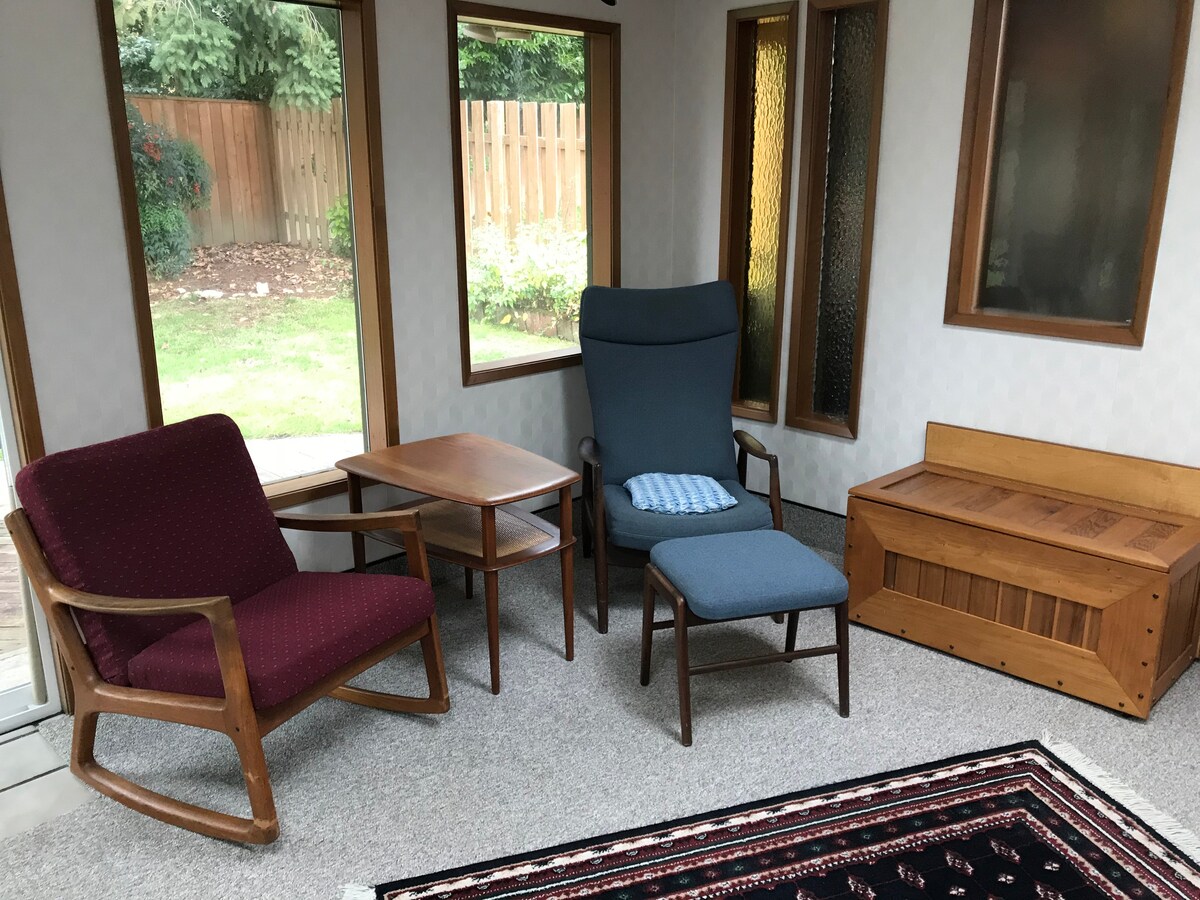 Kodikas, tehokas, studio, joka sijaitsee keskeisellä paikalla Washingtonin piirikunnassa Portlandin ja Beavertonin välissä. Ei hotelli tai motelli, vaan syrjäinen, hiljainen ja tyylikäs tila, joka on erillään yksityisen asunnon talosta. Ei muita vieraita, vauvoja tai lapsia. Ei maksua pysäköinti kadun ajotien ulkopuolella. avaimeton ovilukko. Rentoudu porealtaassa, älä muuta asetuksia. Saatan kysyä arvioitua saapumisaikaa. Portlandissa ei ole myyntiveroa. Ei ylimääräisiä siivousmaksuja. Kirjaudu sisään milloin tahansa klo 15.00 jälkeen. Ei varauksia samalle päivälle klo15.00 jälkeen.