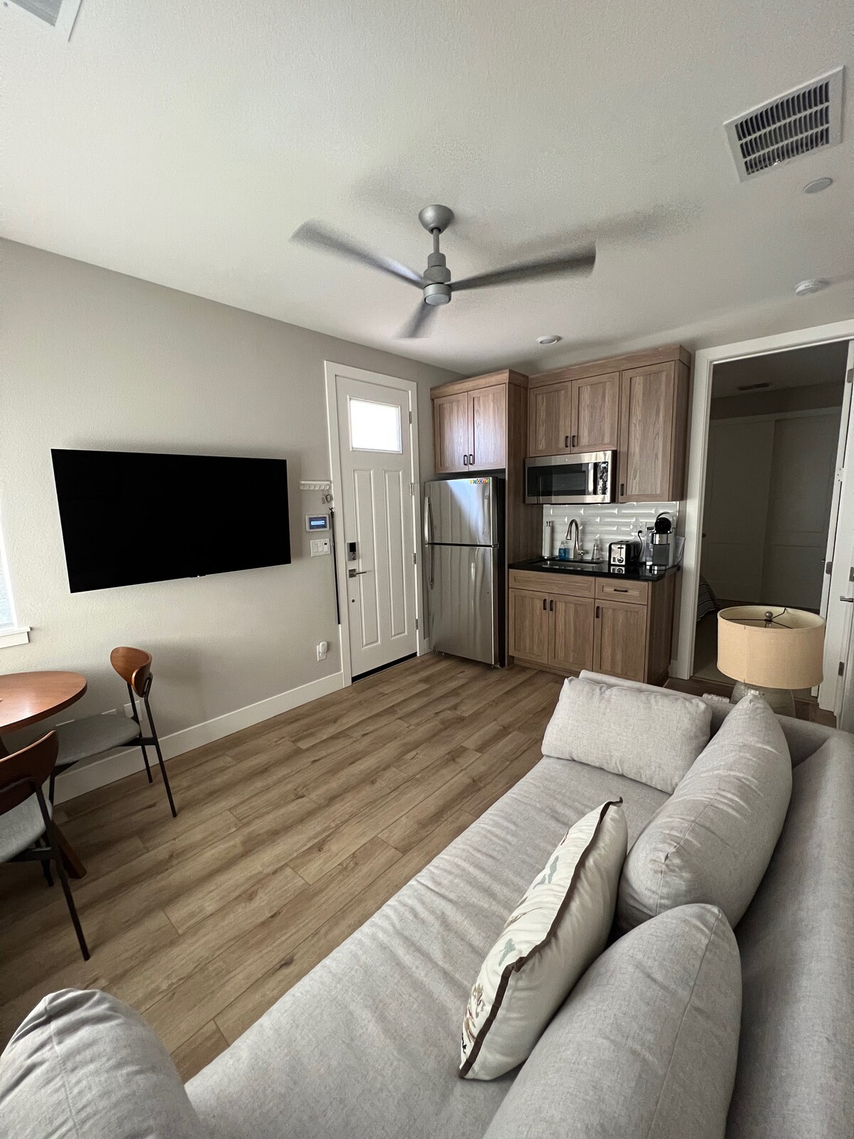 Turvallinen ja kätevä, täysin varustettu keittotila, oma kylpyhuone, ylellinen queen-vuode, jossa on tyynynpäällinen, istuimet, 49tuuman TCL Roku, tyylikäs ja käytännöllinen hissikahvi/ruokapöytä sekä vehreä patio, jossa on suihkulähde. Kätevä sijainti - Nopea pääsy moottoritielle 50 - 17 minuuttia Sacramenton tai Folsomin keskustaan - Kävelymatkan päässä ostosmahdollisuuksista, ravintoloista ja julkisista liikennevälineistä (Regional Transit Gold Line, Zinfandelin asema)