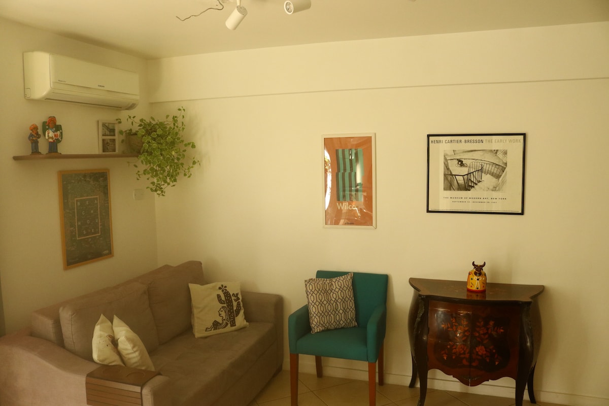 Bohon tyylikäs huoneisto Copacabanan rannalla! - Queen-vuode, vuodesohva, ruokapöytä, ilmastointi ja tila kotitoimistolle (wifi 300 Mbit/s). Keittiö, jossa liesi, jääkaappi, uuni, mikroaaltouuni, tehosekoitin, kahvinkeitin, mehunkeitin, voileivänkeitin, pannut, keittiövälineet, erilaiset kirjat, kitara ja TV sovelluksilla. - Kauppa ja apteekki rakennuksen alla, ravintoloita ja kauppoja huoneiston ympärillä. - Lentokenttä 8,3 km - Cristo Redentor 11,5 km: n päässä - Pão de Açúcar 2,8 km: n etäisyydellä