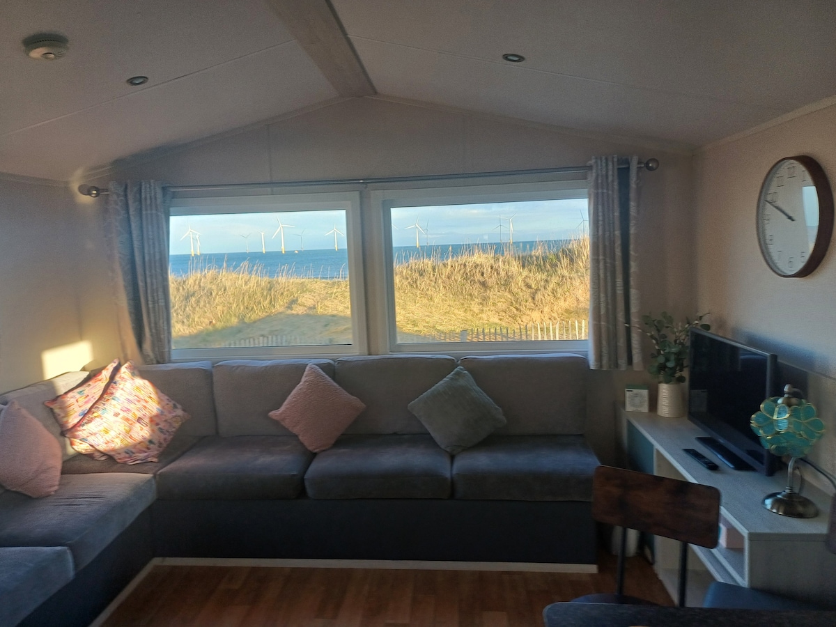 Beachfront Caravan with Sea View, Sleeps Six. Nauti upeista merinäkymistä tästä UUDESTA modernista 2 makuuhuoneen ja 2 kylpyhuoneen asuntovaunusta, jossa on vuodesohva ja tilava oleskelu-/ruokailutila. Sijaitsee aivan rannalla, ihanteellinen perheille ja pienille ryhmille. Perheesi ei jää jumiin tekemiseen vain lyhyen kävelymatkan päässä Redcarin laiturilta, minigolfista, leikkipuistoista ja paljosta muusta. Unohtamatta loputtomia vaihtoehtoja kahviloista, ravintoloista ja baareista - kaikkea, mitä tarvitset hauskaan ja rentouttavaan lomakohteeseen rannikolla!