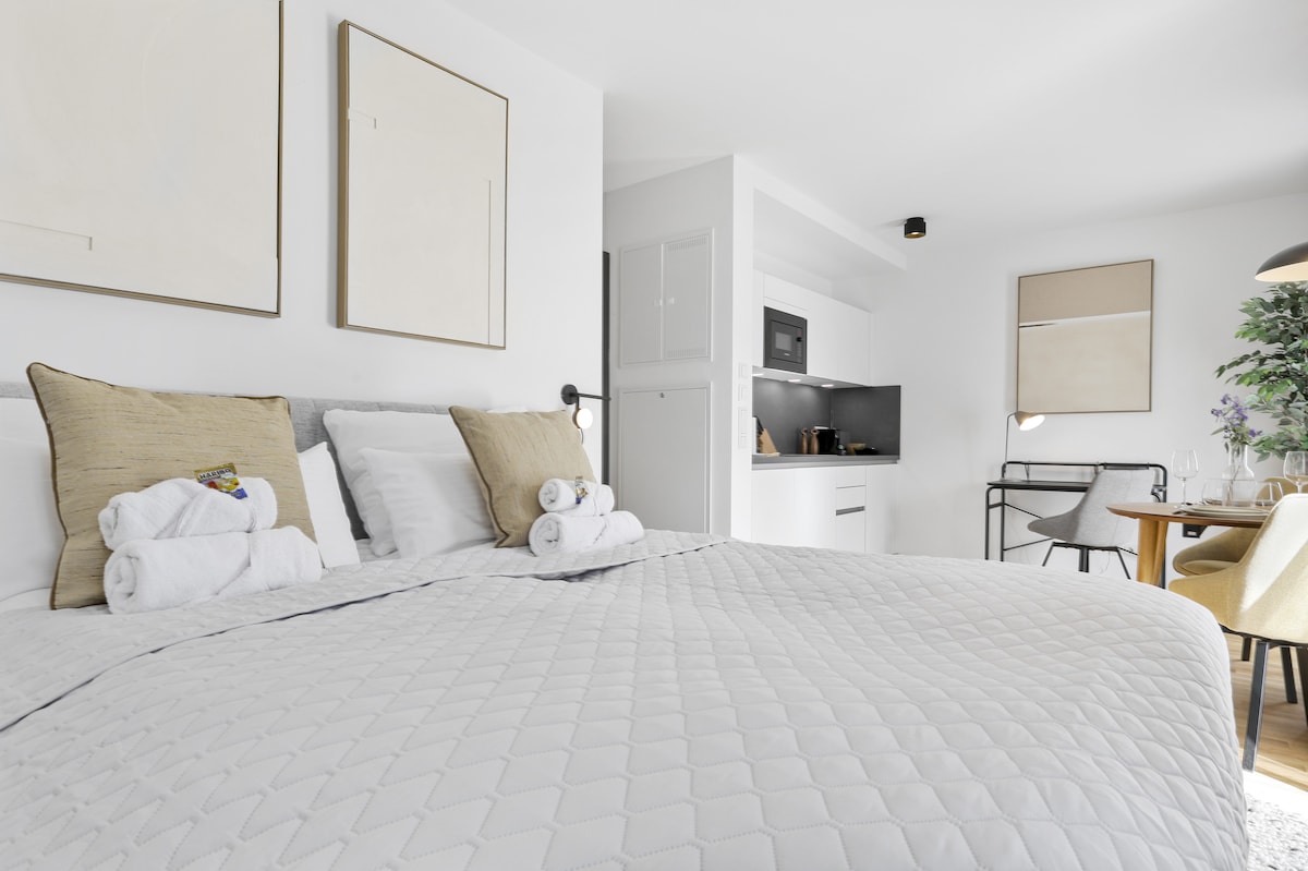 Majoitu yhdessä kaupungin sydämessä sijaitsevassa Superior Studio -majoituksessa. -suunnittelijakalusteet (Saba Italia, Perdali ja muut...) - Box spring bed from cocoon luxury beds, bed size: 160 x 200 cm, satin bed linens, bedding like in luxury hotels -mukava sohva, älytelevisio -halli ruokailutila ja työpöytä - täysin varustettu keittiö – Pääsy taloon ja huoneistoon PIN-koodilla ja etukäteen tehty sisäänkirjautuminen verkossa - pesukoneet ja kuivausrummut kellarissa WeWashin kautta - viikoittainen siivous