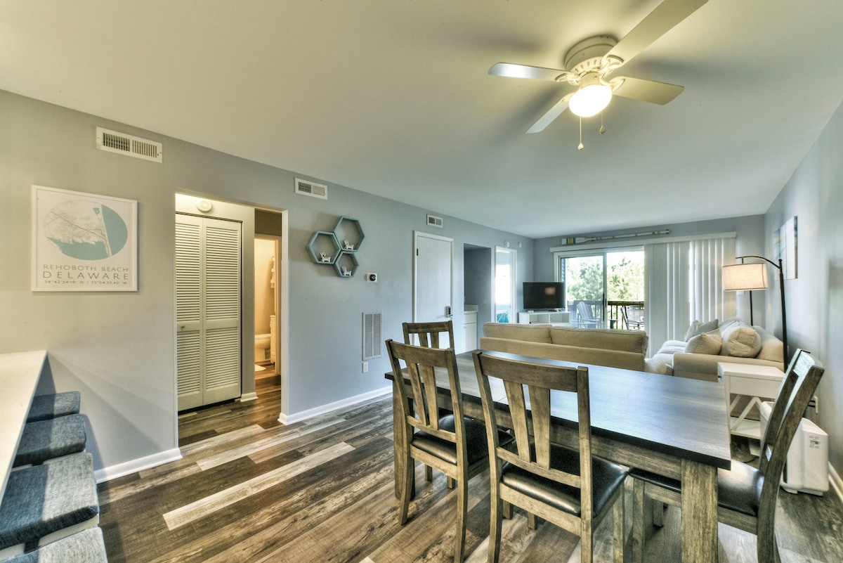 Hiljaisessa merenranta-asunnossamme on kaikki kodin mukavuudet, upeat näkymät, parveke, joka leijuu rauhallisen rantakadun yläpuolella, ja se on vain muutaman askeleen päässä ravintoloista, kaupoista, pelihalleista, huvipuistoista ja kaikista parhaista rantakadun ruokapaikoista! Kaupungin kaikki paikat ovat kävelyetäisyydellä! Jos haluat lähteä kauemmas, polkupyörävuokraamo on vain muutaman oven päässä! Nauti pyöräretkestä kaupungin läpi tai Dewey Beachille. Jos etsit maisemallista ajelua, nauti pyöräreiteistä Cape Henlopen State Parkiin ja Lewesiin.
