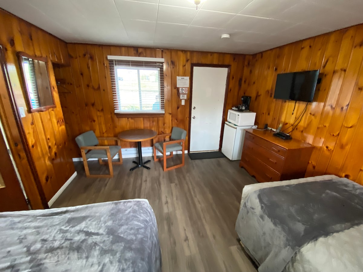 Huoneessa 14 on 2 parivuodetta ja yksityinen 4-osainen kylpyhuone, jossa on wc, pesuallas ja amme/suihku. Kaikissa huoneissamme on mikroaaltouuni, kahvinkeitin ja baarijääkaappi, ilmastointilaite, sähkölämmitys, tv ja satelliittipalvelu, ilmainen Wi-Fi, ilmainen pysäköinti ja ilmainen piknikkialue, jossa on nuotiopaikka henkeäsalpaavan Madawaska-joen rannalla. Tämä huone on veden äärellä!