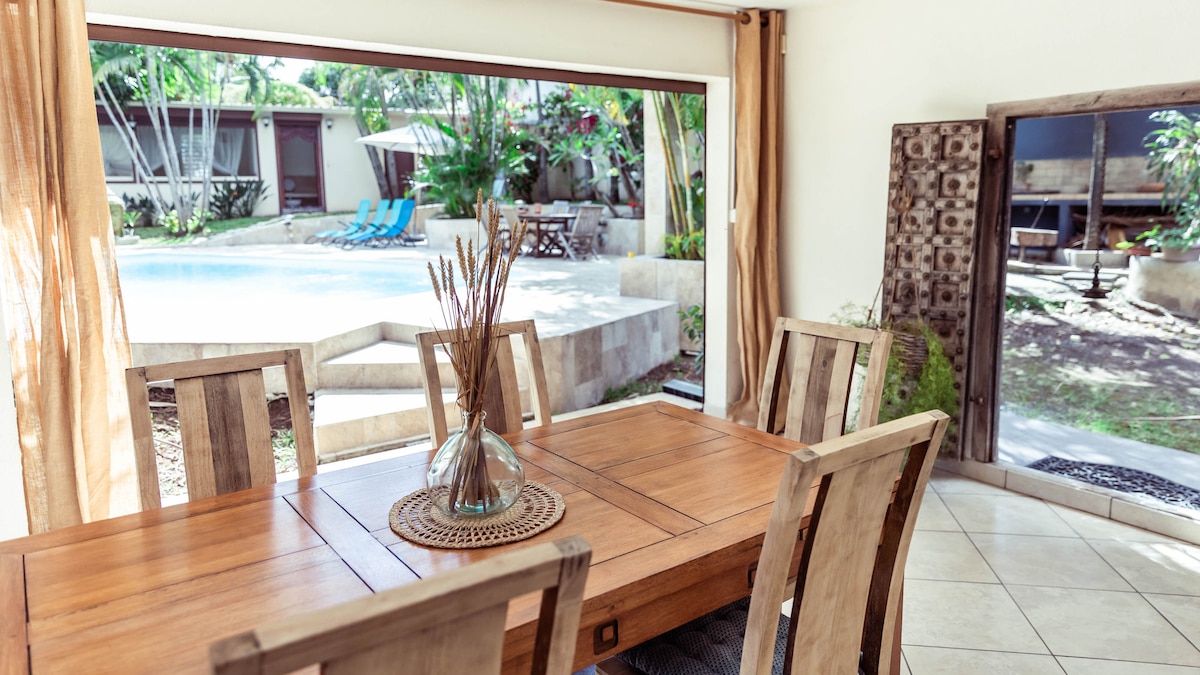 Rauhallisessa naapurustossa sijaitseva kotimme tarjoaa ihanteellisen lomakohteen niille, jotka etsivät rauhaa ja rentoutumista. Talossamme on kolme mukavaa makuuhuonetta ja kaksi master-sviittiä, joista on näkymät lämmitetylle uima-altaalle ja porealtaalle, sekä täysin itsenäinen studio, jossa on sauna. Talossamme voi majoittua mukavasti useita perheitä tai suuri joukko ystäviä. Mukavuutesi vuoksi tarjoamme myös mahdollisuuden pysäköidä ajoneuvo kohteen sisälle