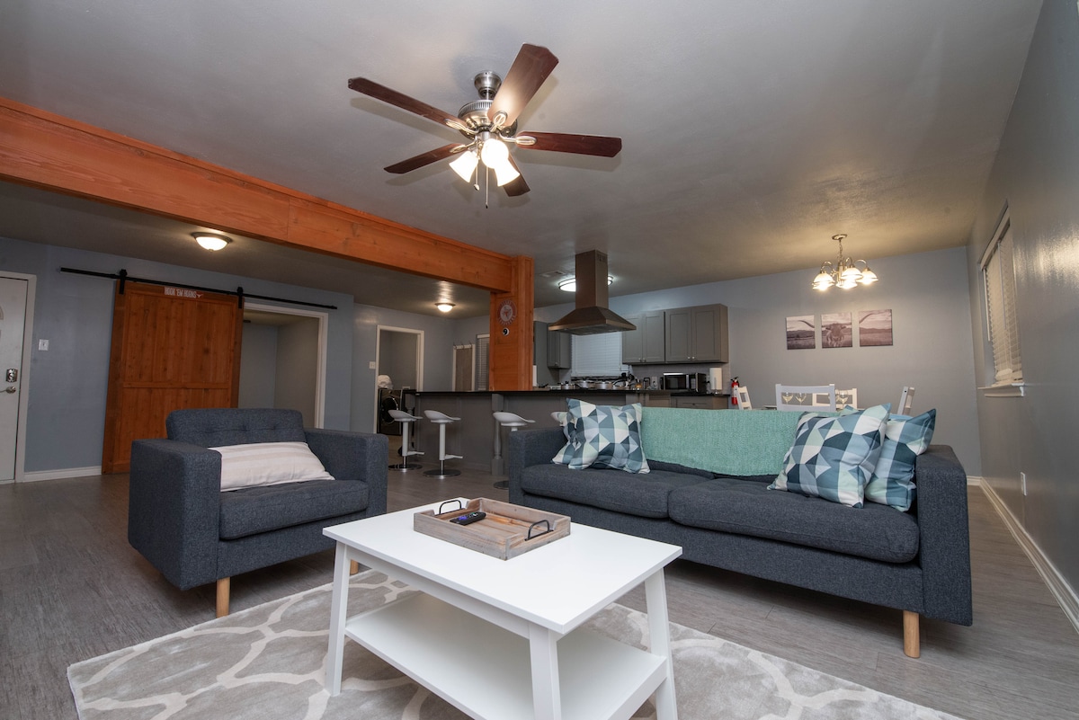 Söpö avoin ja ilmava moderni 3 makuuhuoneen ja 2 1/2 kylpyhuoneen rivitalo Richardsonin sydämessä. Richardson Station -kohteemme sijaitsee aivan Telecom Corridorin varrella ja sopii täydellisesti pitkälle viikonlopulle tai pitkälle majoittumiselle. Mukavasti sisustettu oleskelutilamme tarjoaa tuntikausia viihdettä 50 tuuman Roku-television, Arcade-pelijärjestelmän ja kahdella näytöllä varustetun pöytäkoneen avulla. Yläkerran makuuhuoneessa on pieni työtila, jossa on työpöytä, joka voi toimia nukkumisalueena, ja viehättävällä takapihallamme on kaasugrilli, tulisija ja istumapaikat.