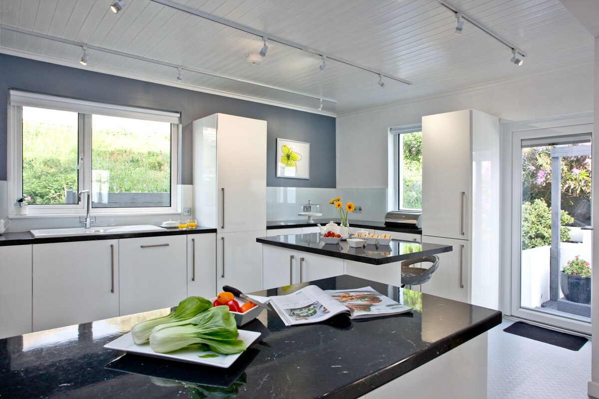 Upea merinäkymä 200 metrin päässä kallioista ja rantakävelyreiteistä. Äskettäin kunnostettu, ylellinen, puhdas, kylpyhuone, jossa on TV ja oleskelutila. Päärakennuksen yksityinen lisärakennus, jossa on oma erillinen sisäänkäynti. Voidaan määrittää KUNINGAATTARIVUOTEIKSI - TAI JAKAA 2 YKSITTÄISEKSI, JOS SITÄ PYYDETÄÄN. Valitse 2 vierasta, jos et matkusta yksin. Wifi. Vegaanitalo, ekologisesti puhdistettu. Valikoima aamiaismuroja, tee, kahvi ja kasvimaito sisältyvät hintaan - pieni jääkaappi ja juomien valmistusmahdollisuus. Mikroaaltouuni. Ilmainen pysäköinti.
