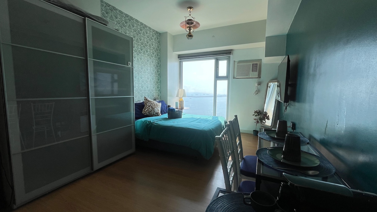 Viihtyisä ja kodikas paikka, joka sijaitsee strategisesti Roxas Boulevardin sydämessä Yhdysvaltain suurlähetystön edessä, kävelymatkan päässä St. Luke's Medical Center Extension Clinic, Robinsons Mall ja nopea ajomatka NAIA:sta. Tämä tilava 1 makuuhuoneen yksikkö on täydellinen lomakohde tai perheloma, koska siinä on vahva internetyhteys, 2 Android-televisiota, joissa on pääsy Netflix-tilille, täysin ilmastoitu olohuone ja makuuhuone. Tämä tila ylpeilee auringonlaskunäkymillään ja kaupunkivaloillaan yöllä.