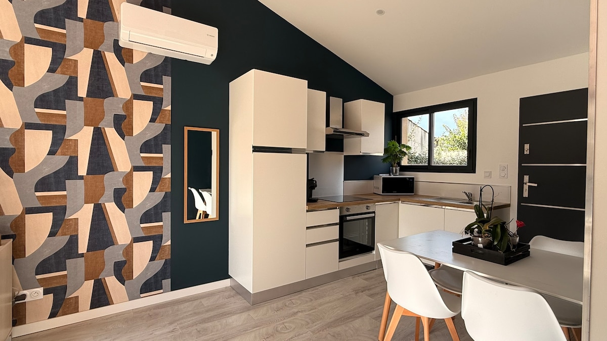 Uusi huoneisto sijaitsee 600 m:n päässä viehättävän Sainte-Cécile-les-Vignesin kylän keskustasta. Siihen kuuluu mukava makuuhuone, valoisa olohuone, mukava vuodesohva ja täysin varusteltu keittiö. Nautit käännettävän ilmastoinnin ja nopean WiFin mukavuudesta. Nauti kauniista terassista, jolta on näkymä puutarhaan ja joka sopii ihanteellisesti aterioille tai rentoutumiseen. Yksityinen pysäköinti kiinteistön päällystetyllä sisäpihalla. Täydellinen rauhalliseen majoittumiseen lähellä keskustaa.