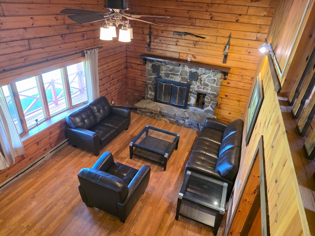 Maisemallinen, viihtyisä hirsimökki metsässä. Täysin kalustettu ja sisustettu. Täysin varustettu keittiö, 1,5 kylpyhuonetta, pyykinpesukone/kuivausrumpu. 1 makuuhuone, jossa on täysikokoinen ja 2 yhden hengen vuodetta. 1 huone, jossa on täysikokoinen vuode. 2 yhden hengen XL-vuodetta saatavilla. Katso kuvat sängyn mitoista. Esteetön, työpöytäalue, wifi, ei lankapuhelinta, hyvä verizon-signaali, Roku-tv, lämmitys ja ilmastointi. Lemmikkieläimet sallittu. Omistaja asuu autotallin ylä. Kohteessa on koira. Kanoja ja kukkoja on mökillä, ja ne voivat pitää meteliä päivin ja öin. Suuri kuisti. Ota tohvelit mukaan. :-)