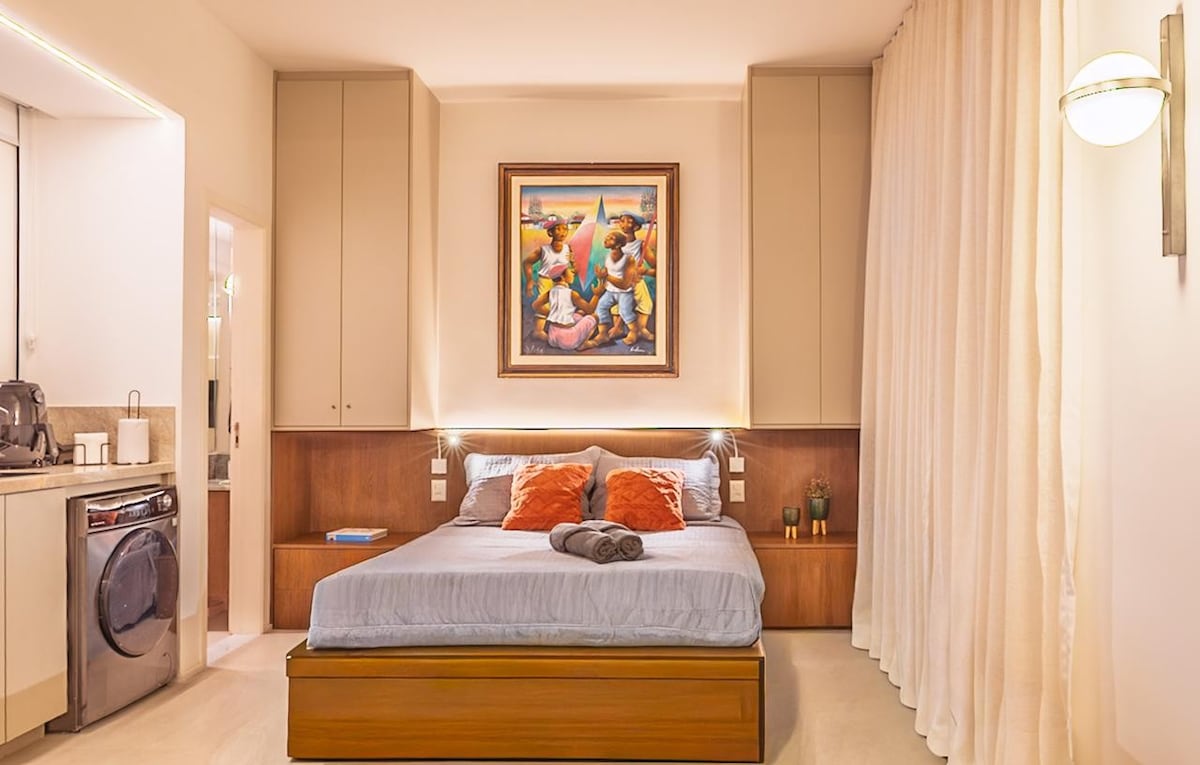 Tervetuloa Arpadorin sydämeen Ipanemassa. Tämä täysin kunnostettu apto (2022) on vain 1 korttelin päässä Arpoadorin rannalta rakennuksessa, jossa on ympärivuorokautinen ovimies, mukavuus ja turvallisuus. Sijainti on erinomainen, lähellä General Osórion metroasemaa, ympärillä ravintoloita, baareja, supermarketteja ja viehättävä brasilialainen käsityömessut. Tila on moderni, mukava ja täydellinen: •ilmastointi • Nespresso-kahvinkeitin • pesukone •Cama Quem • Kylpyhuone ja wc.