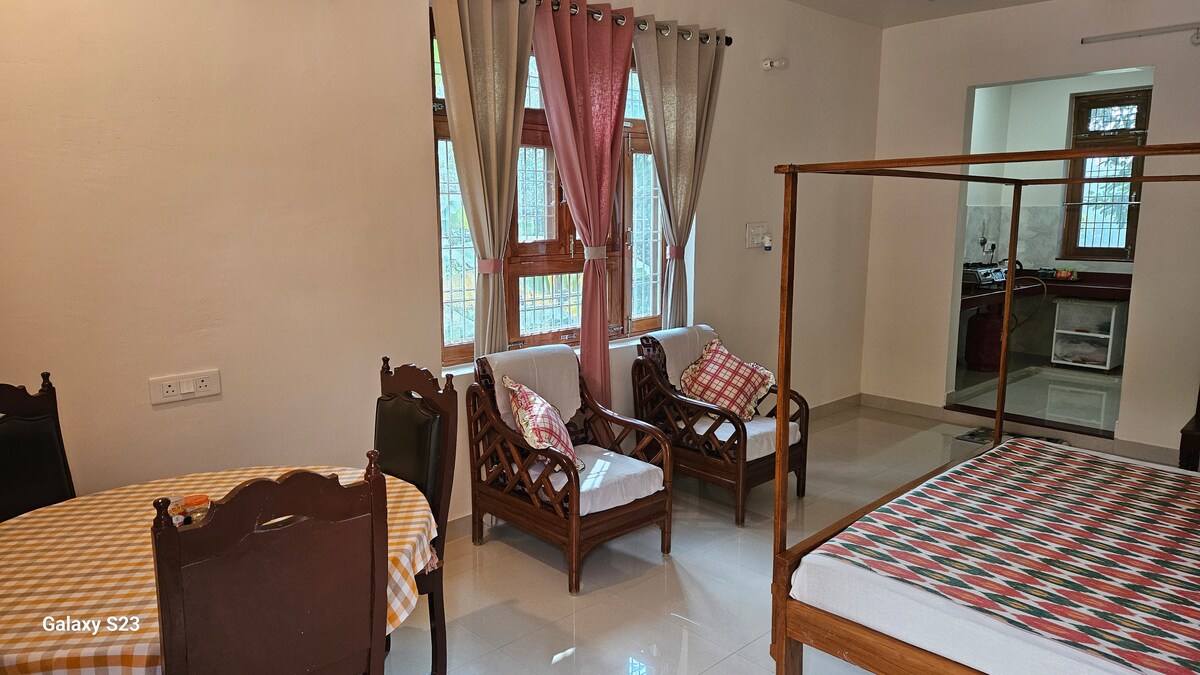 Cozy 1BHK Suite – Perfect for Peace & Comfort! Enjoy a peaceful retreat in charming 1BHK suite. The suite offers: 2 comfy double beds for restful sleep A spacious sofa for 6-8 people to relax and chat A fully-equipped kitchen with utensils, microwave, fridge, and more A refreshing bathroom with geyser & shower Safe parking for your vehicle Ideal for solo stays or up to 5, this space ensures comfort and relaxation throughout your stay. We provide Car/bike/activa on rent!