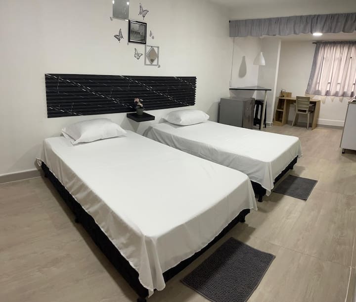 Sinulla on oma huone asunnossa, ja voit käyttää jaettuja tiloja.