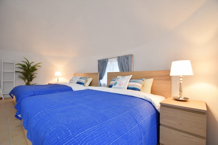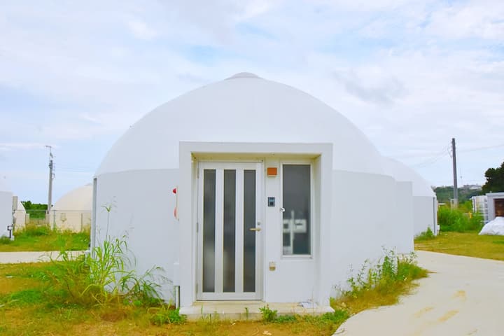 Sisätiloissa on valkoisia ja sinisiä huonekaluja, joissa on kupolinmuotoinen katto, joka antaa huoneelle tilavuuden tunteen. Huone on yksiö, joka on kompakti mutta lämmin ja viihtyisä. Se on myös varustettu lasten ruokailuvälineillä, joten se on täydellinen lapsiperheille.