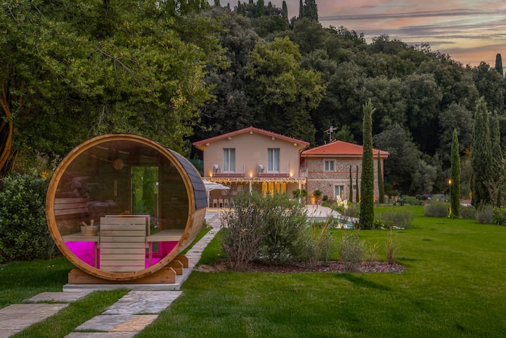 Villa La Fonte on yli 500 neliömetrin suuruinen, ja sitä ympäröi 18 000 neliömetriä koskematonta luontoa. Täällä, muutaman kilometrin päässä alueen tärkeimmistä historiallisista keskuksista, kuten Firenzestä, Pisasta ja Luccasta, aika näyttää hidastuvan: puro ylittää varovasti maan, kun taas luonnollinen lähde – josta huvila on saanut nimensä – virtaa kristallinkirkkaasti, mikä herättää syvän yhteyden historiaan ja alueeseen.